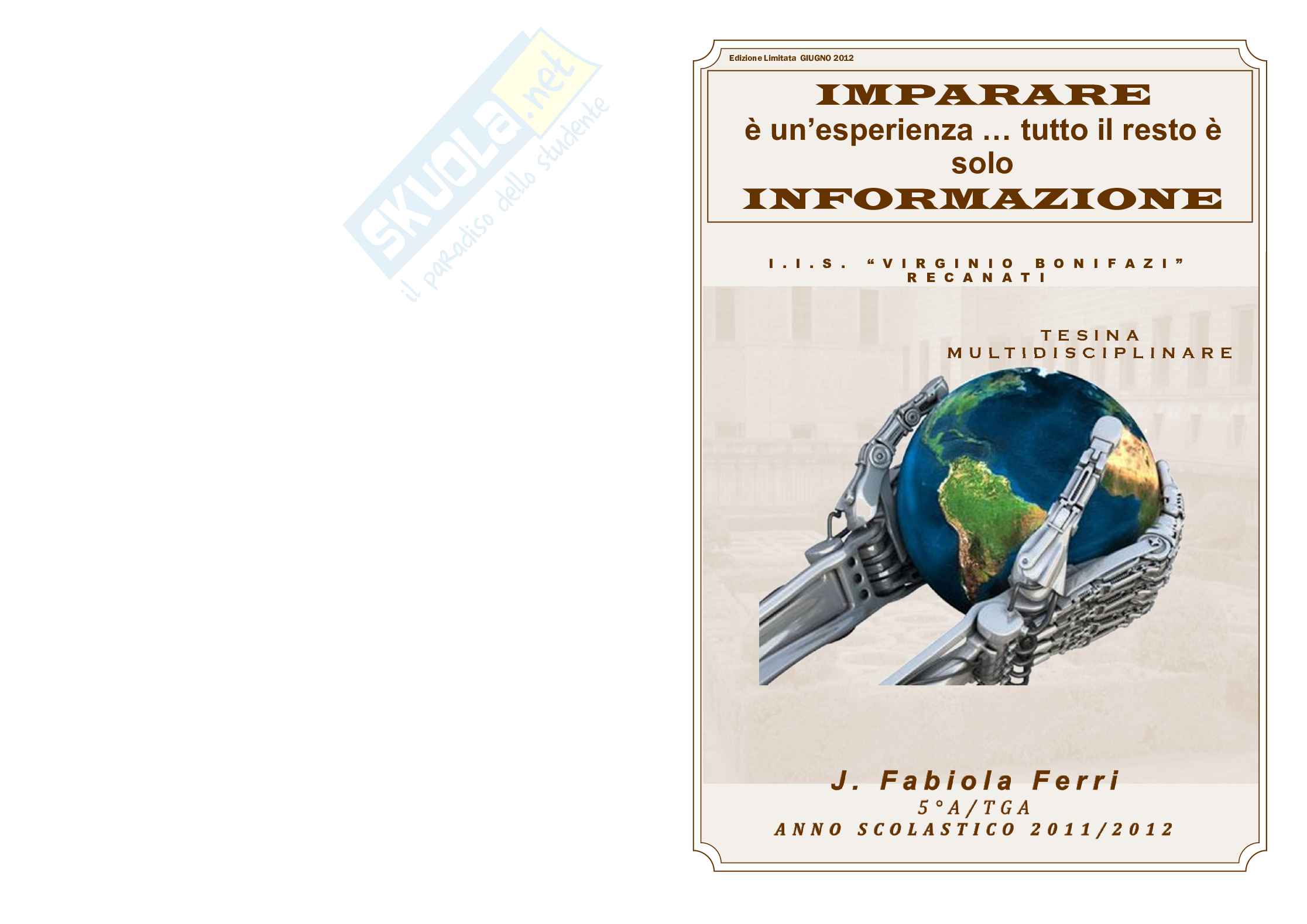 mia classe. “Imparare è un'esperienza; tutto il resto è solo informazione” (da Albert Einstein) è il titolo che