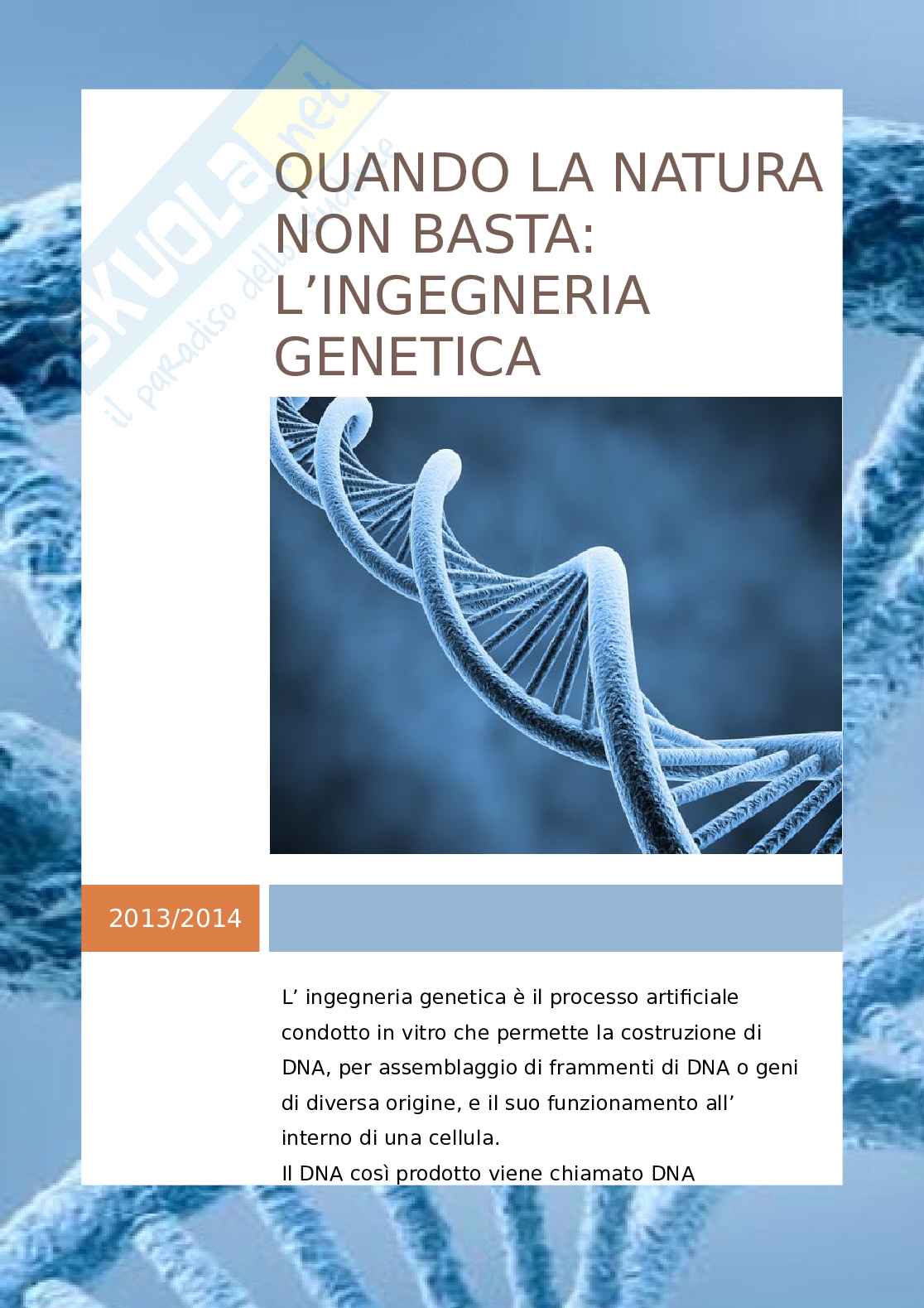 Questa tesina di maturità descrive l'ingegneria genetica. Gli argomenti che la tesina propone sono i seguenti: in Biotecnologie l'ingegneria genetica, in Impianti la regolazione dei processi chimici, in Chimica fisica i legami chimici, in Processi il petrolio, in Inglese genetically modified food, in Microbiologia gli alimenti, Storia la Prima Guerra mondiale e in Italiano D'Annunzio.
