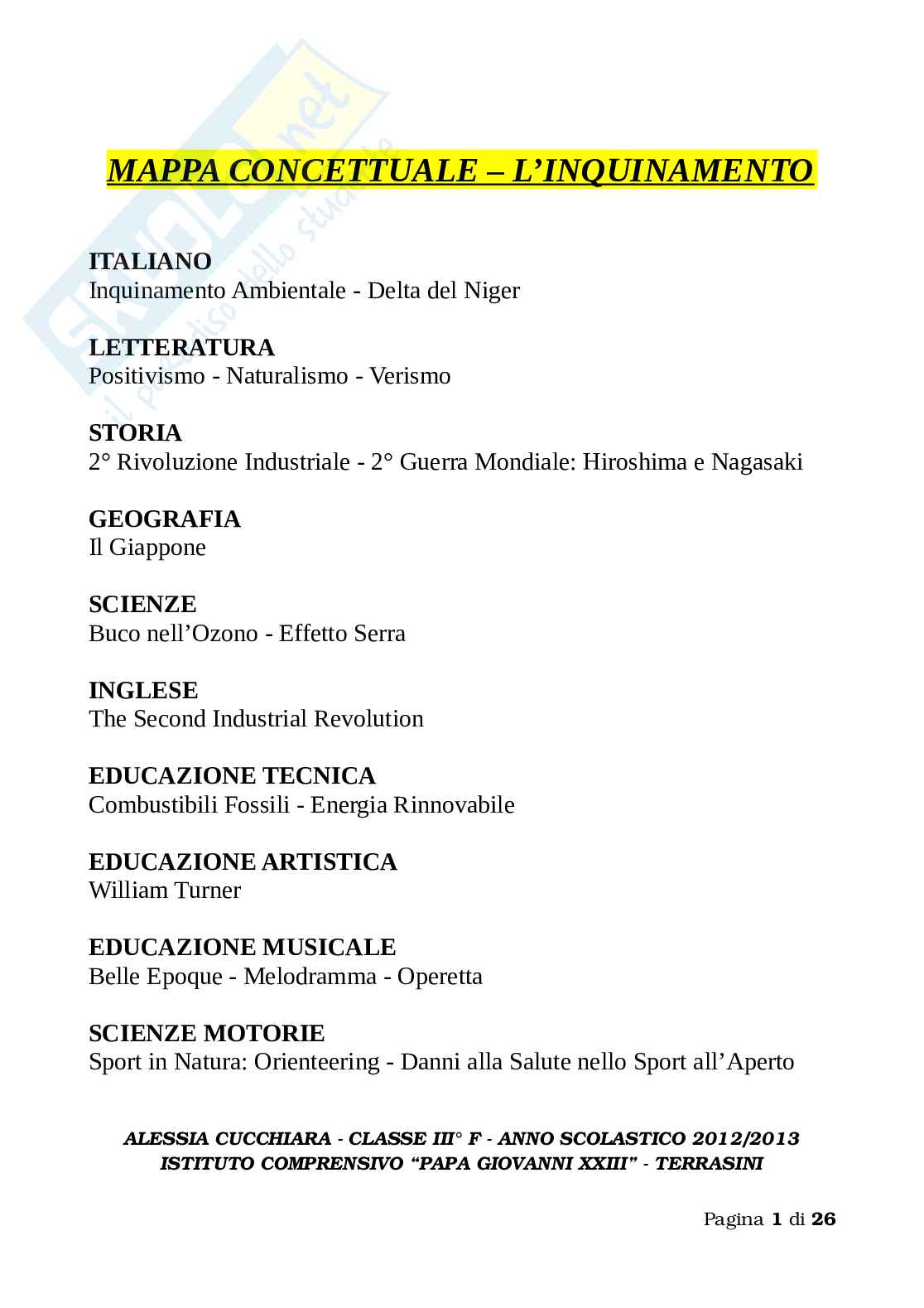 Collegamenti Mappa concettuale terza media sull'inquinamento