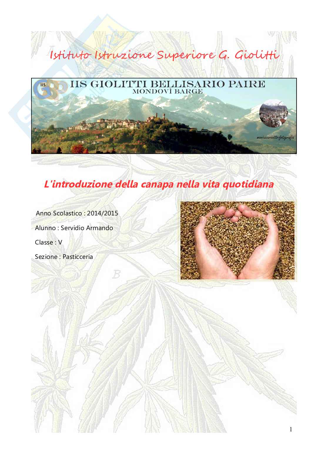 Sintesi Introduzione della canapa nella vita quotidiana, tesina