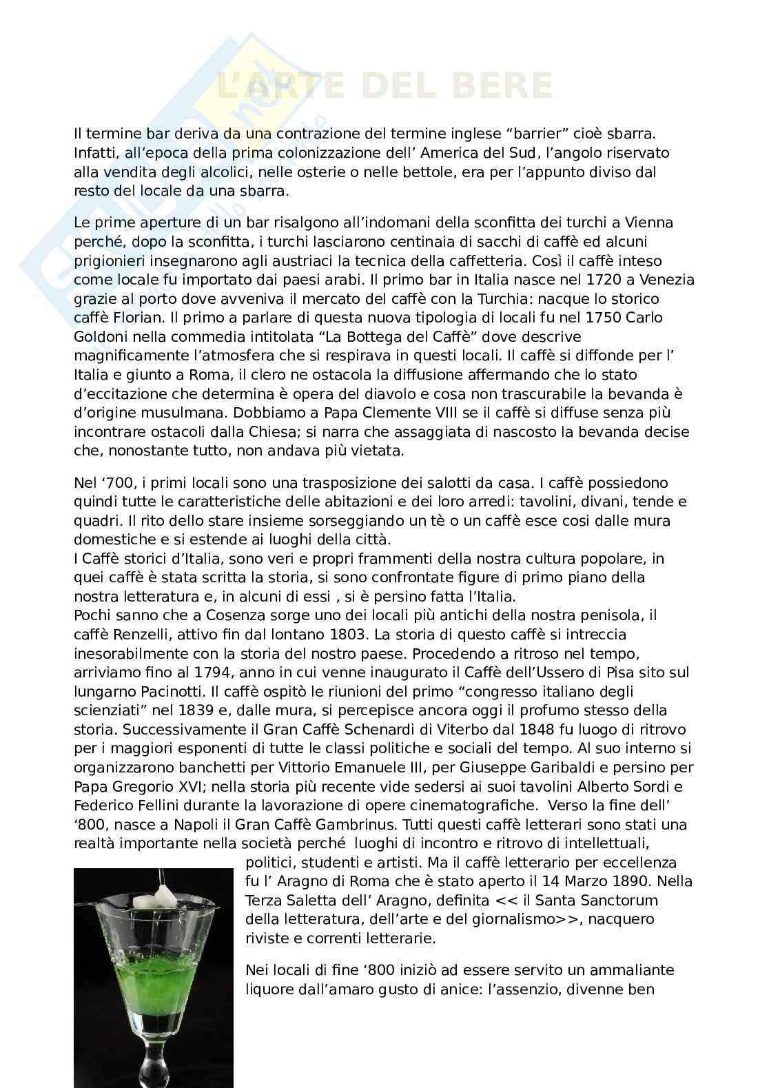 Sintesi Arte del bere tesina