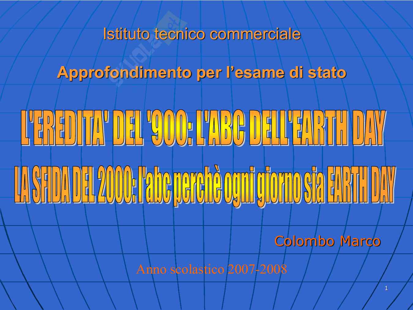 Titolo: Lââ¬â¢eredità del ââ¬Ë900: lââ¬â¢a b c dellââ¬â¢earth day. la sfi