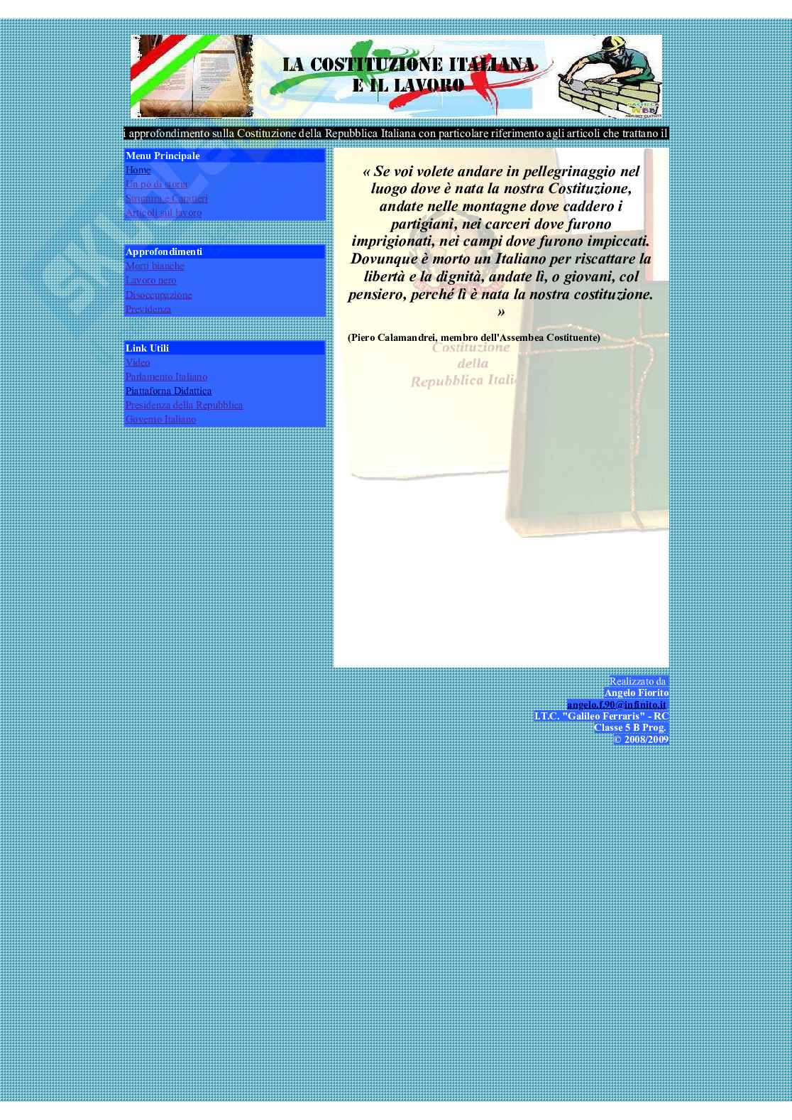 Descrizione: sito web dedicato alla costituzione della repubblica italiana con particolare riferimento agli articoli che trattano il lavoro.