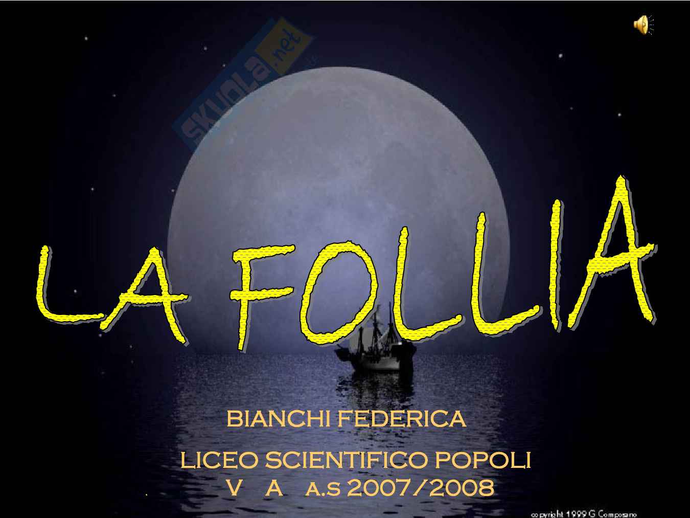 Materie trattate: italiano (Svevo, Pirandello), latino (Nerone e la follia del potere), inglese (Virginia Woolf), filosofia, fisica (elettroenceflogramma e onde elettromagnetiche), geografia, storia (Hitler, il trionfo della follia nella storia), storia dell'arte (Munch, la follia della disperazione), scienze (La follia della Terra, i terremoti)