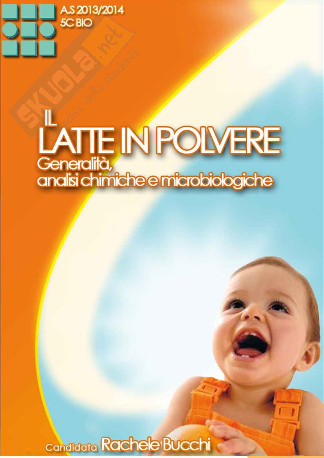 La seguente tesina di maturità descrive il latte in polvere. Il latte è un alimento fondamentale per la nostra alimentazione, è infatti consumato sin dalla nascita ed è assunto in ogni momento della nostra vita. E' molto importante per l'alimentazione del bambino in quanto fornisce proteine di grande valore biologico 1, grassi facilmente assimilabili, zuccheri con alto potere calorico, sostanze minerali e vitamine.