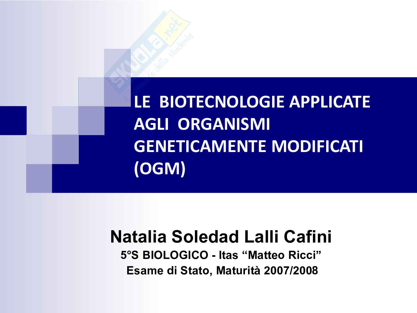 Titolo: Le biotecnologie applicate agli ogm