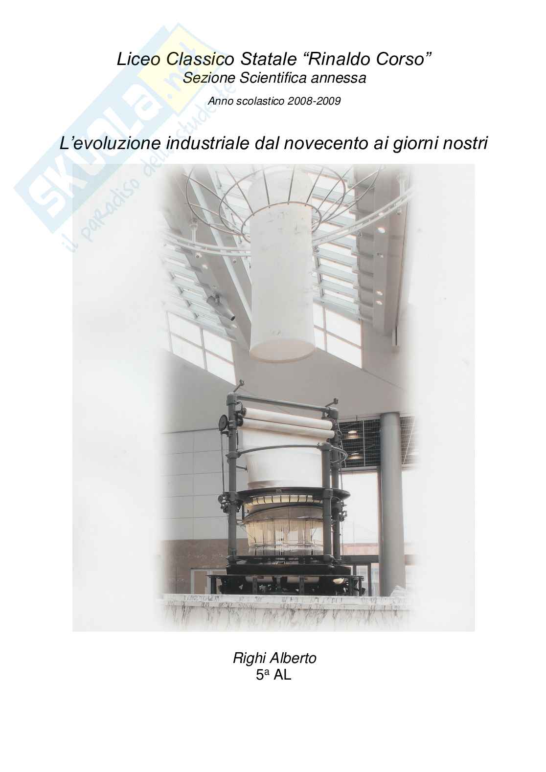 Il 900 fu il secolo che sotto vari aspetti segnò una vera e propria rivoluzione nel settore industriale ed in quello dei metodi di produzione e di organizzazione del lavoro nelle fabbriche. Fu infatti a partire dagli ultimi anni dell'800 che la crisi economica avviatasi intorno al 1873 ebbe termine. Le sue cause strutturali risiedevano in una ondata di speculazioni finanziarie che avevano portato al fallimento di diverse banche e a ciò si aggiunse poi, soprattutto per quanto riguardava il continente europeo, una crisi di sovrapproduzione industriale ed agricola. Il nuovo secolo fu tuttavia caratterizzato da una netta ripresa, che portò all'avvio di un nuovo ciclo di prosperità economica destinato a durare fino alla vigilia del primo conflitto mondiale. Tra il 1900 e il 1914 si assistette ad un notevole incremento demografico legato all'inflessione del tasso di mortalità , che comportò un allargamento del mercato e della domanda dei beni di consumo. Inoltre fu avviato un intenso sfruttamento di nuovi giacimenti auriferi e si assistette ad una rivoluzione dei trasporti, dell'agricoltura e delle industrie, legata all'utilizzo intensivo di nuove fonti energetiche, quali petrolio ed elettricità , nonché all'uso di nuove tecnologie e materiali. Queste innovazioni, unite all'allargamento dei mercati, all'infittirsi dei traffici commerciali e alla maggiore richiesta di beni di consumo, rappresentarono fattori determinanti per la straordinaria evoluzione industriale che da lì in avanti era destinata a segnare, per quanto concerneva metodi di produzione, condizione dei lavoratori e molti altri aspetti, l'inizio di una nuova era di benessere. La portata rivoluzionaria di tali innovazioni sconvolse infatti in positivo, ma anche in negativo, il modo di vivere dei paesi che maggiormente risentirono di questi mutamenti. La grande disponibilità di beni di consumo, fino ad allora riservati a pochi a causa della loro scarsa reperibilità e dell'alto costo, resa possibile anche da nuovi modelli di organizzazione industriale, faceva intravvedere un lungo periodo di prosperità . Le classi meno agiate, le quali erano sempre state escluse dalle comodità ed agiatezze accessibili alla sola nobiltà e alla borghesia, cominciarono a loro volta ad acquistare i beni prodotti in larga scala dalla nascente "Grande Industria". L'industria a sua volta diede origine a nuove categorie sociali: la classe operaia ed impiegatizia e la borghesia industriale, che contribuirono a costituire quella sterminata massa di consumatori a cui venivano destinati i beni prodotti. Gli occupati nell'industria diventavano a loro volta clienti, entrando a far parte dell'anello produzione-acquisto-consumo-produzione. La nascita e la "creazione" di nuovi bisogni, quali la mobilità e la casa, contribuì inoltre ad aumentare la richiesta di nuovi prodotti a prezzi sempre più accessibili (automobili, elettrodomestici ecc.). Tuttavia, questa logica dell'efficienza (massimizzare la produttività al minor costo possibile) non sempre venne utilizzata secondo logiche di profitto (finanziarie, commerciali ecc.), ma venne applicata anche in altri settori. Basti pensare agli orrori dei due conflitti mondiali, in cui la nuova industria bellica svolse un ruolo da protagonista nella creazione di armamenti sempre più potenti e micidiali.