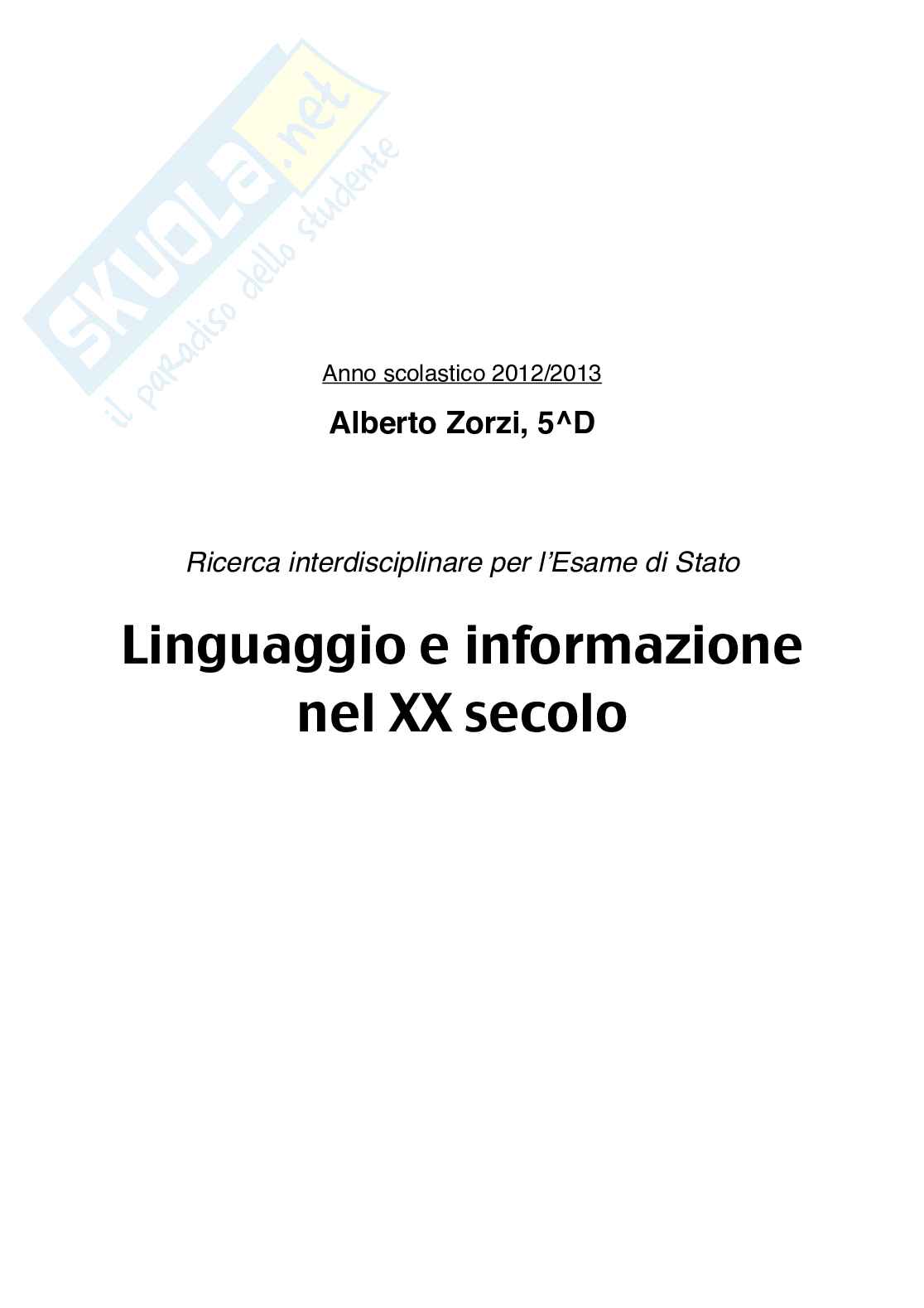 Ho voluto quindi analizzare, nella mia tesina di maturità, come l’informazione è stata vista, interpretata e utilizzata, nell’ambito della letteratura, della storia e della filosofia in un periodo in cui essa al contrario era per forza di cose unilaterale. Ho approfondito, in particolare, l’aspetto che riguarda lo stretto rapporto presente tra essa e il linguaggio, evidenziando come un’alterazione voluta e mirata del linguaggio possa essere strumento di distorsione e controllo sull’informazione e sulla popolazione.
