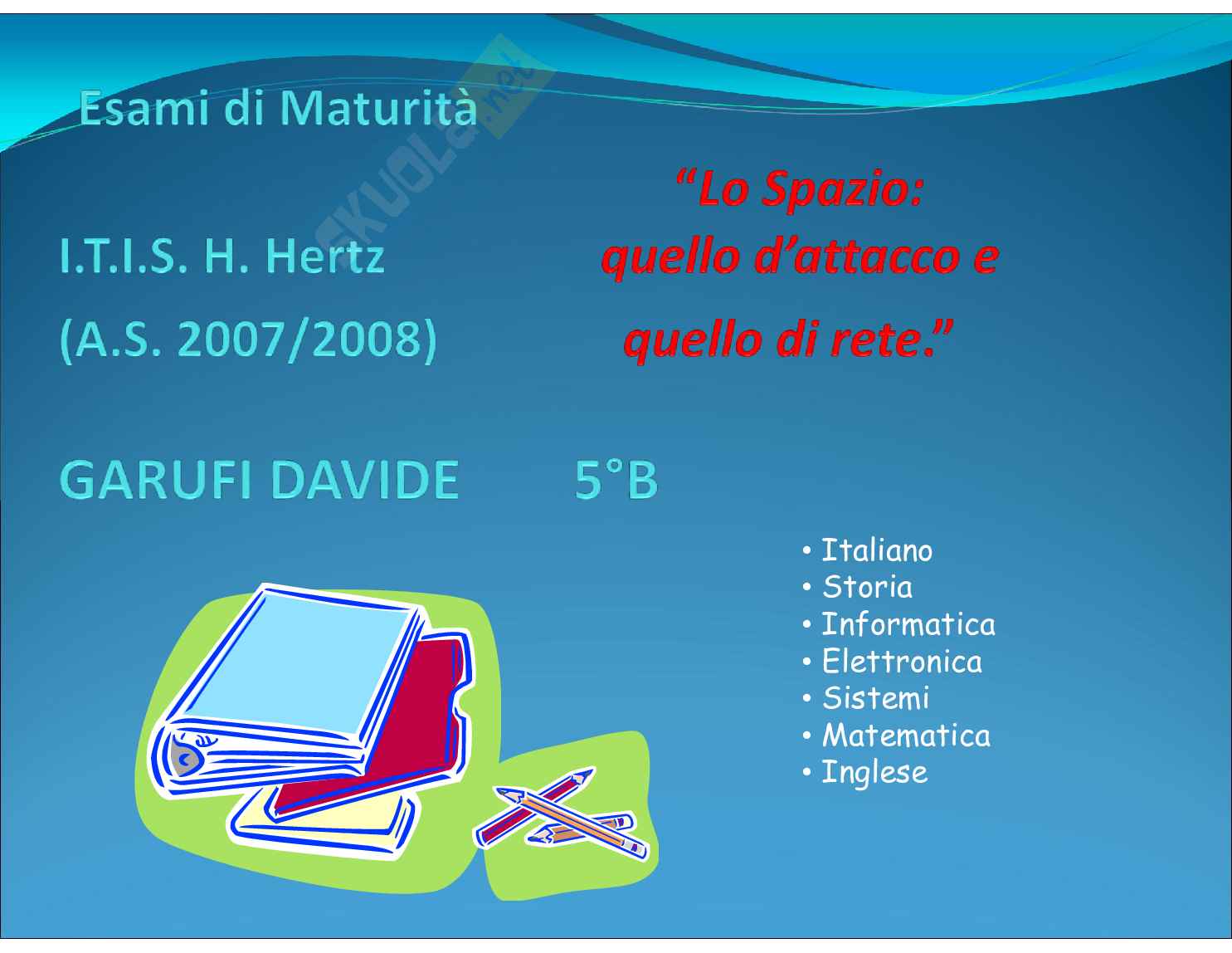 Materie trattate: italiano, storia, elettronica, inglese, sistemi, informatica, matematica