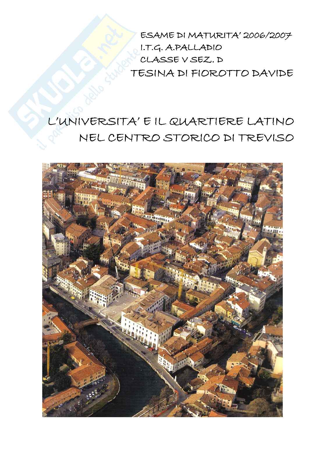 La tesina presenta il lavoro, che è stato recentemente eseguito, di restauro e ristrutturazione dell'ex ospedale di Treviso. E' stato realizzata la nuova sede dell'università e un splendido quartiere che arricchisce la città . Notevole interesse present.