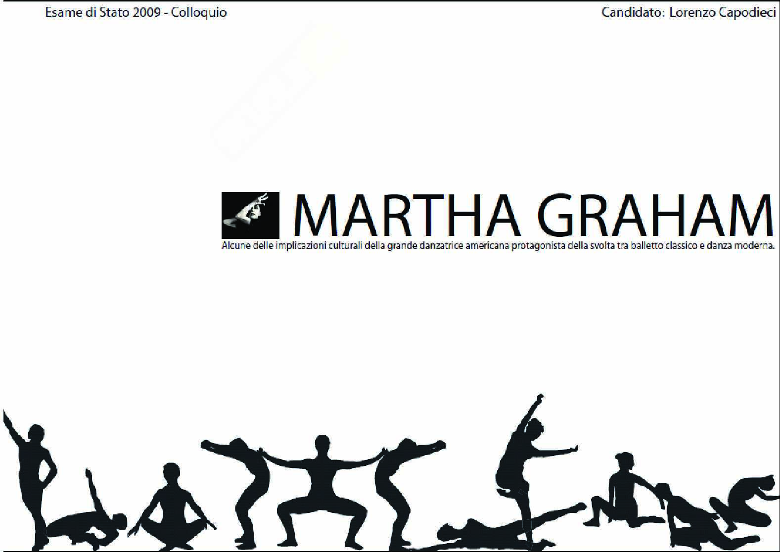 Il mio percorso vuole esporre alcuni dei numerosi collegamenti tra l'arte della Graham e la cultura novecentesca, anche attraverso l'uso di filmati d'epoca, per dimostrare come sia una figura da poter collocare senza dubbio alla pari con letterati e filosofi trattati dai programmi delle scuole istituzionali.