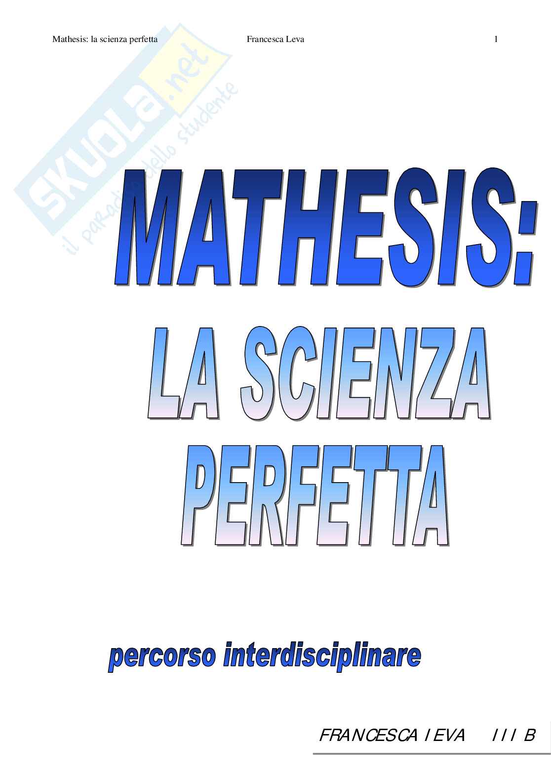 MATHESIS: LA SCIENZA PERFETTA