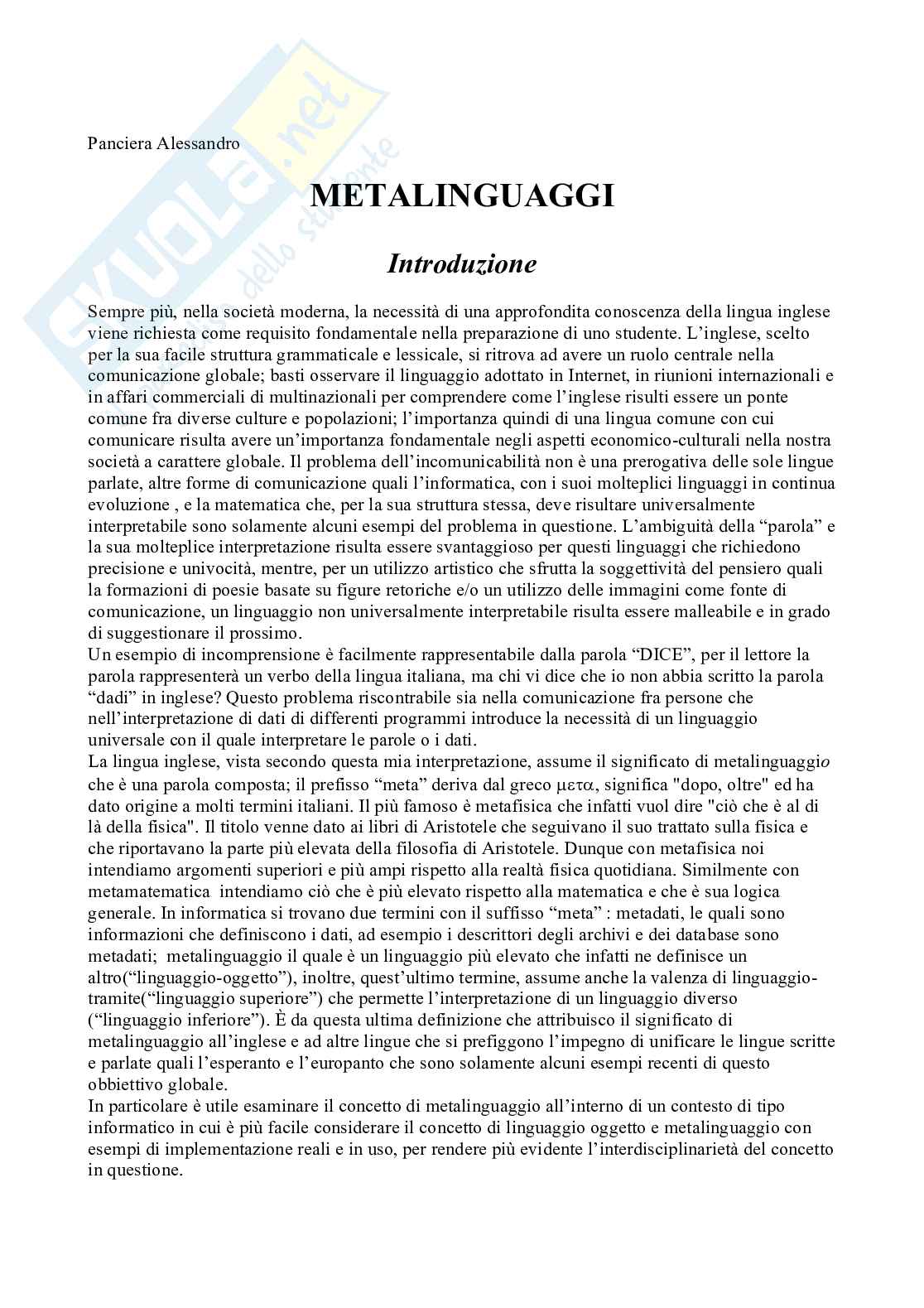 quale anch’esso si presta ad essere un metalinguaggio che permette di creare dei linguaggi