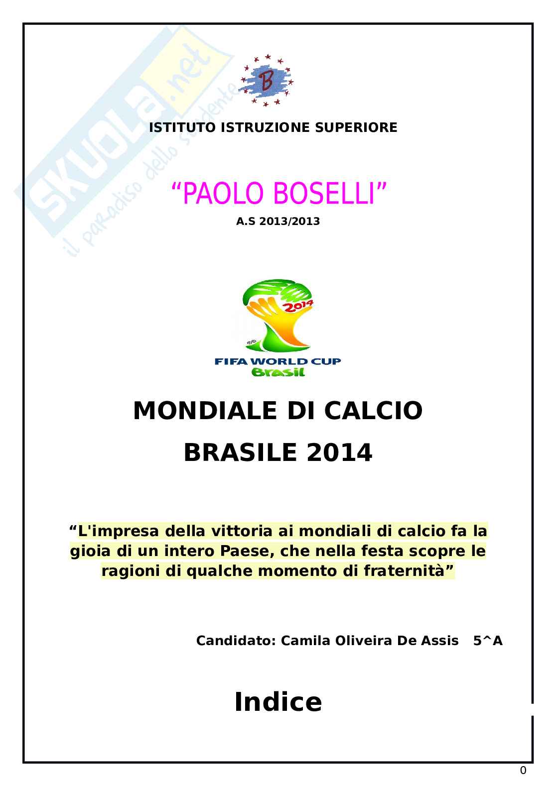 La scelta della mia tesina é stata più che altro personale, perché amo il calcio e gli sport in generale. Il Comitato Esecutivo della FIFA ha approvato, con un anticipo di sei mesi rispetto al passato, la data del sorteggio dei gironi di qualificazione, che si è svolto il 30 luglio 2011 a Rio de Janeiro.