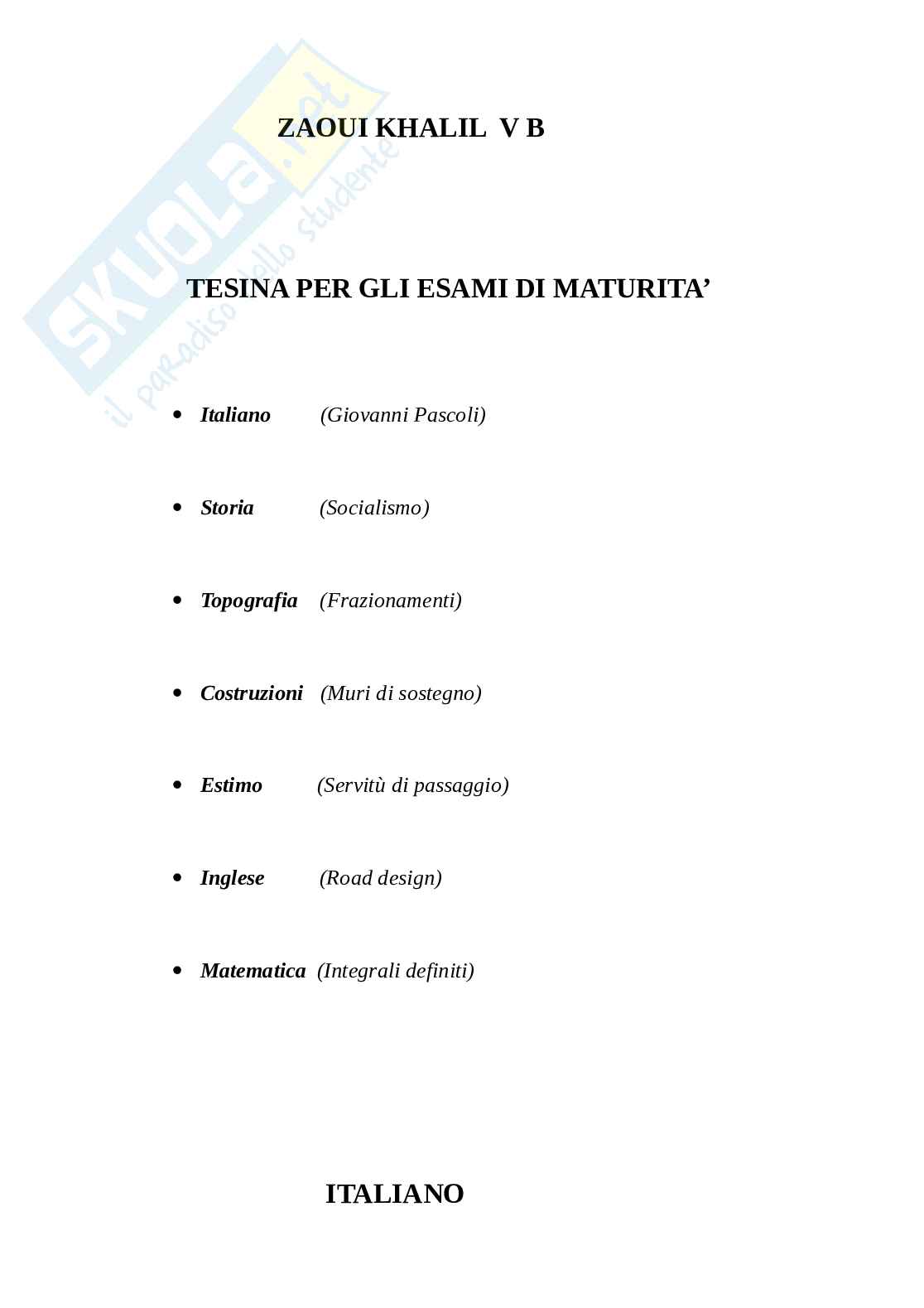 TESINA PER GLI ESAMI DI MATURITA’