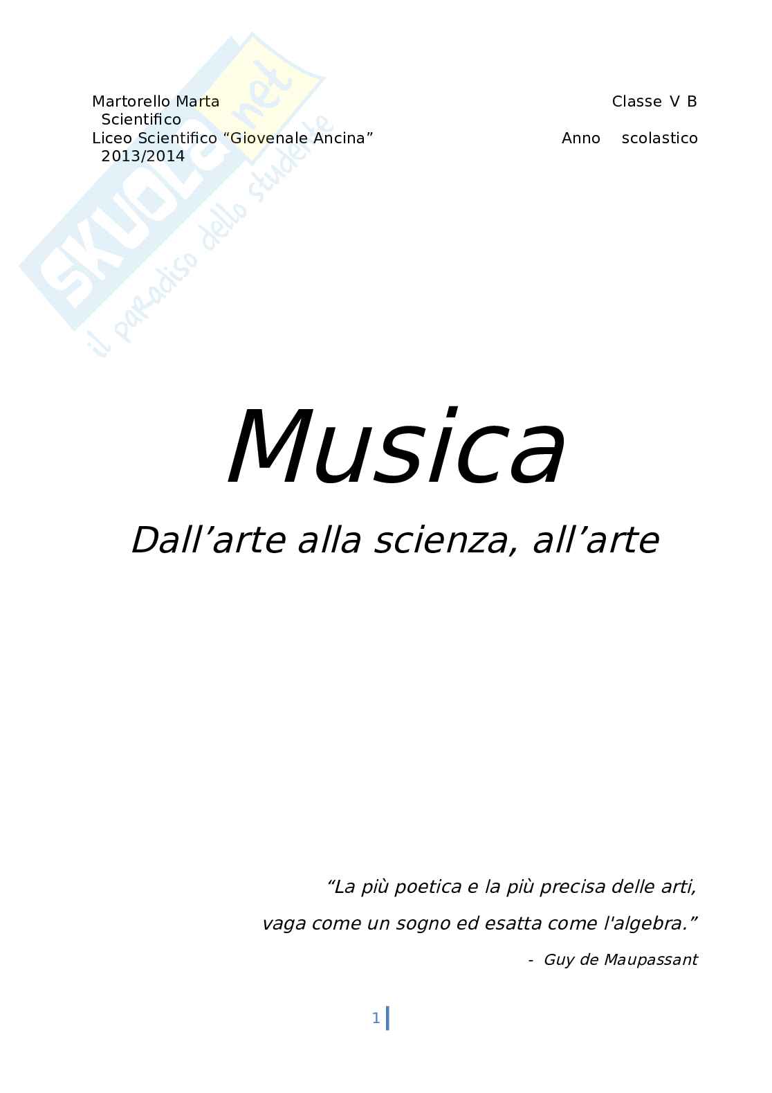 Sintesi Musica, scienza e filosofia tesina