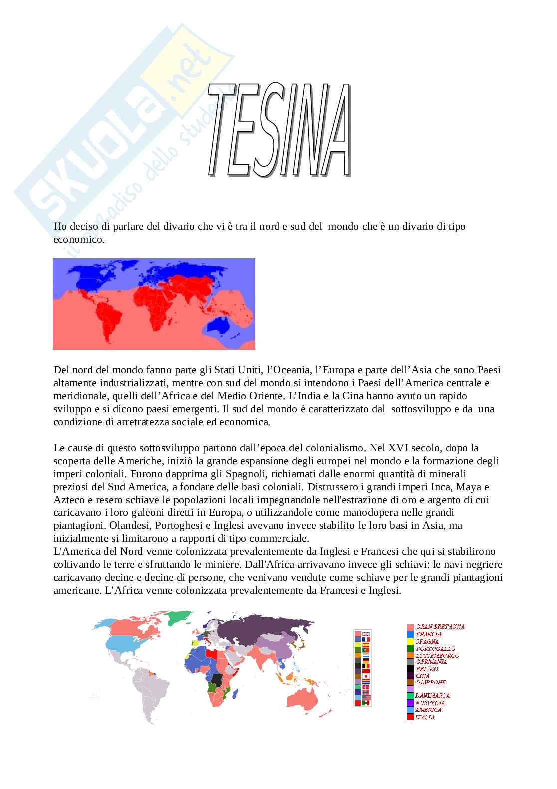 Introduzione Nord e Sud del mondo tesina