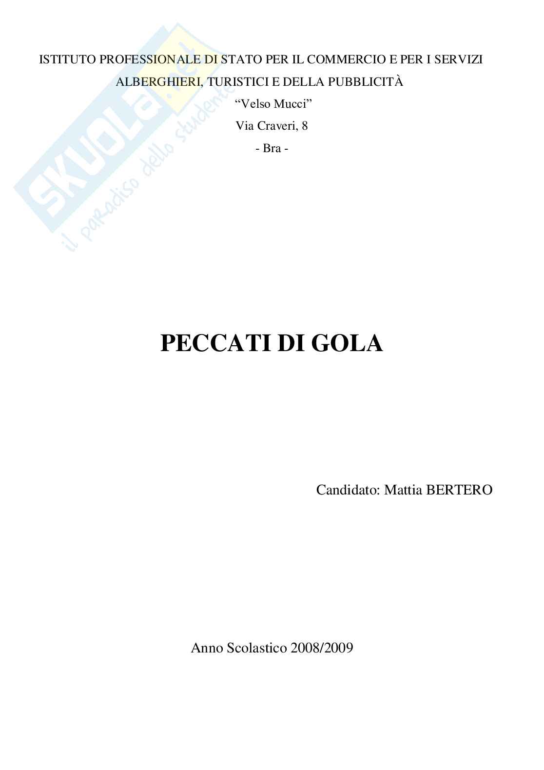 Descrizione: il peccato di gola spesso è considerato come il peccato di minore importanza tra i sette peccati capitali introdotti nel vii sec. e' invece il peccato più difficile da cui ci si può liberare. nella società odierna è presente più che mai, la tesi