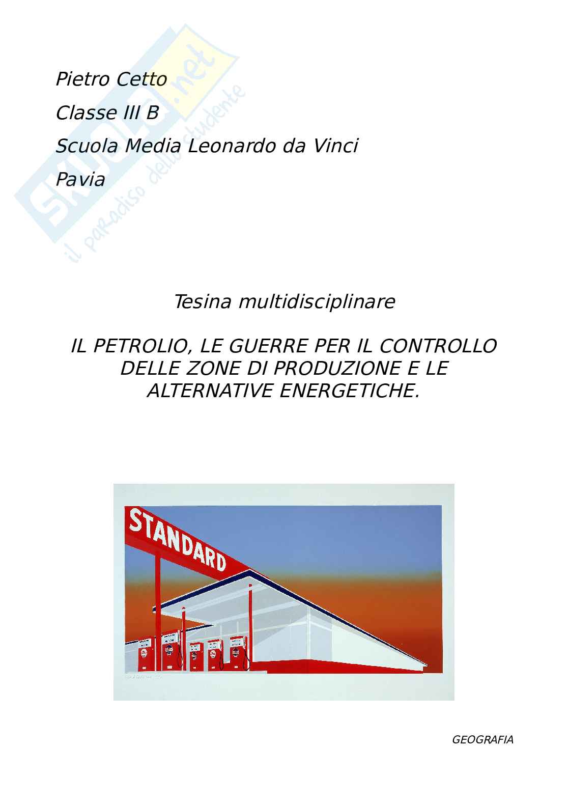Scienze e Tecnica: il petrolio, ciclo produttivo, energie alternative;