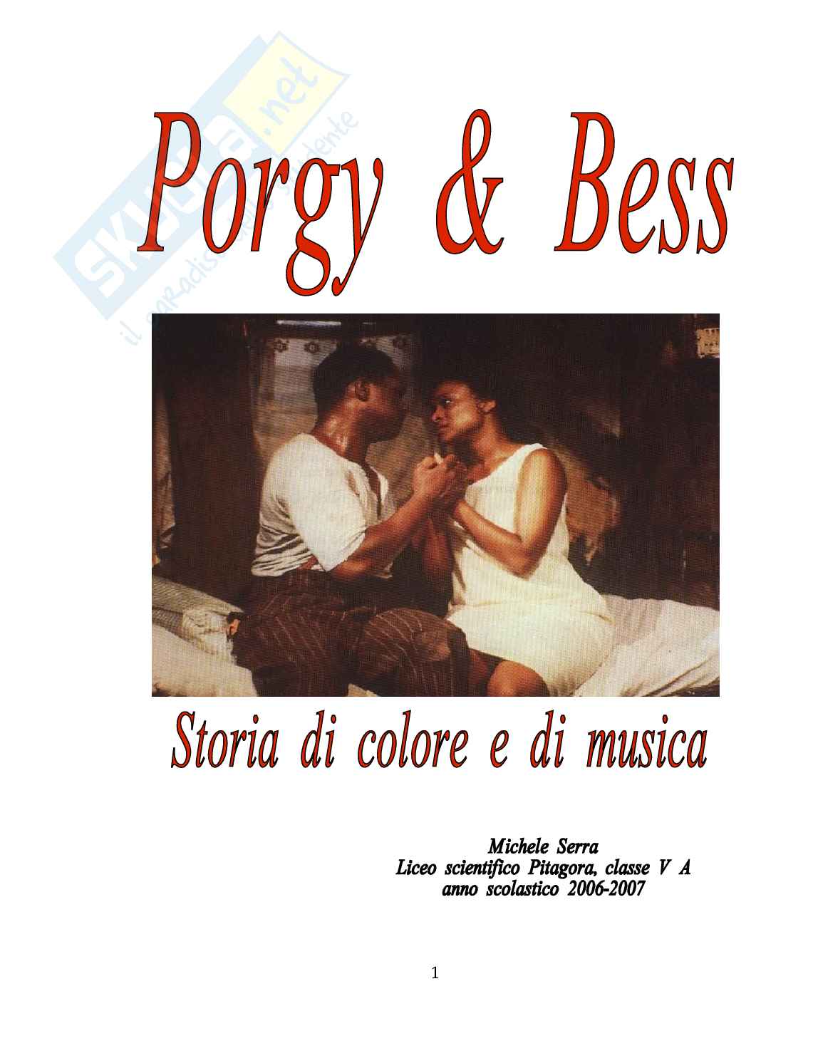 La tesina parla di Porgy&Bess, l'opera lirica di Gershwin, del romanzo a cui è ispirata, di come sia in relazione con la condizione della comunità di colore degli USA, della storia di tale comunità e degli sviluppi artistici che l'opera ha avuto nel Jazz.