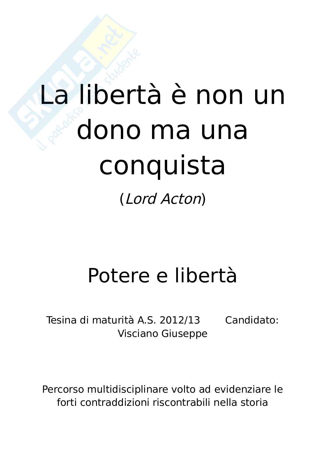 Intendo realizzare la mia tesina di maturità, volta ad analizzare il continuo squilibrio tra l’esercizio del potere e la libertà dell’individuo, partendo dall’analisi di un film, visto qualche anno fa, che mi aveva particolarmente colpito già allora, ma che, alla luce degli studi affrontati quest’anno, mi sembra quanto mai utile ad iniziare il mio discorso.