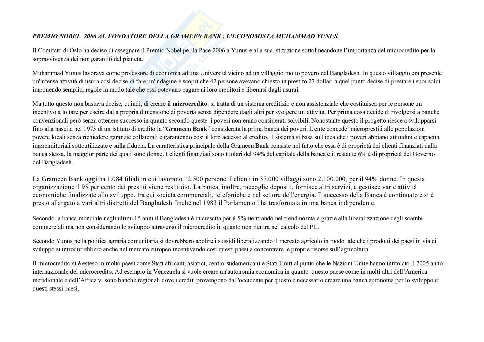 Titolo: PREMIO NOBEL 2006 AL FONDATORE DELLA GRAMEEN BANK