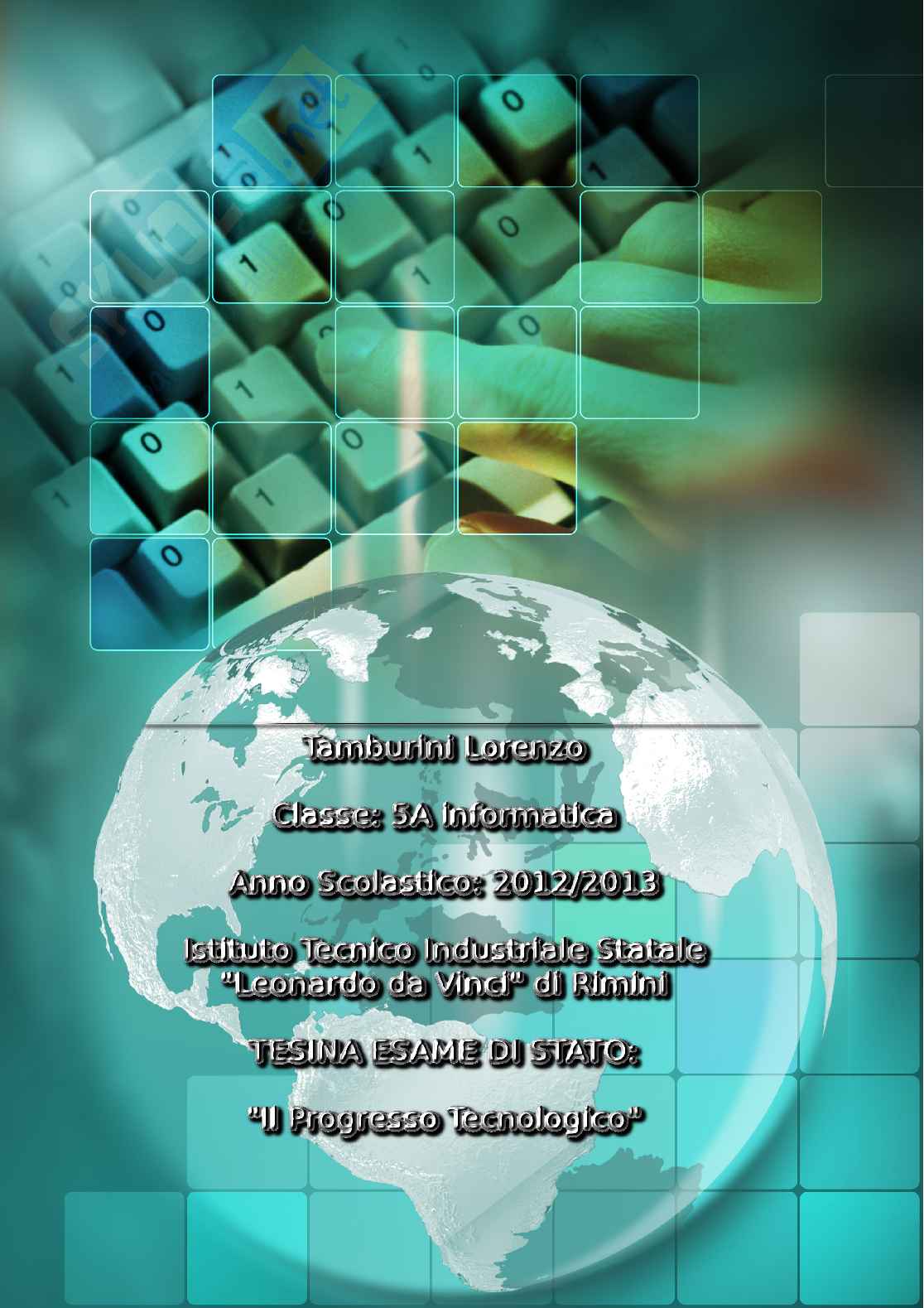 In questa tesina di maturità viene descritto il progresso tecnologico, un fenomeno che può essere messo in connessione con un evento storico di grande importanza, come la Seconda Rivoluzione Industriale. In Italiano è possibile effettuare un importante collegamento con il tema del progresso affrontato dal celebre intellettuale italiano Giovanni Verga.