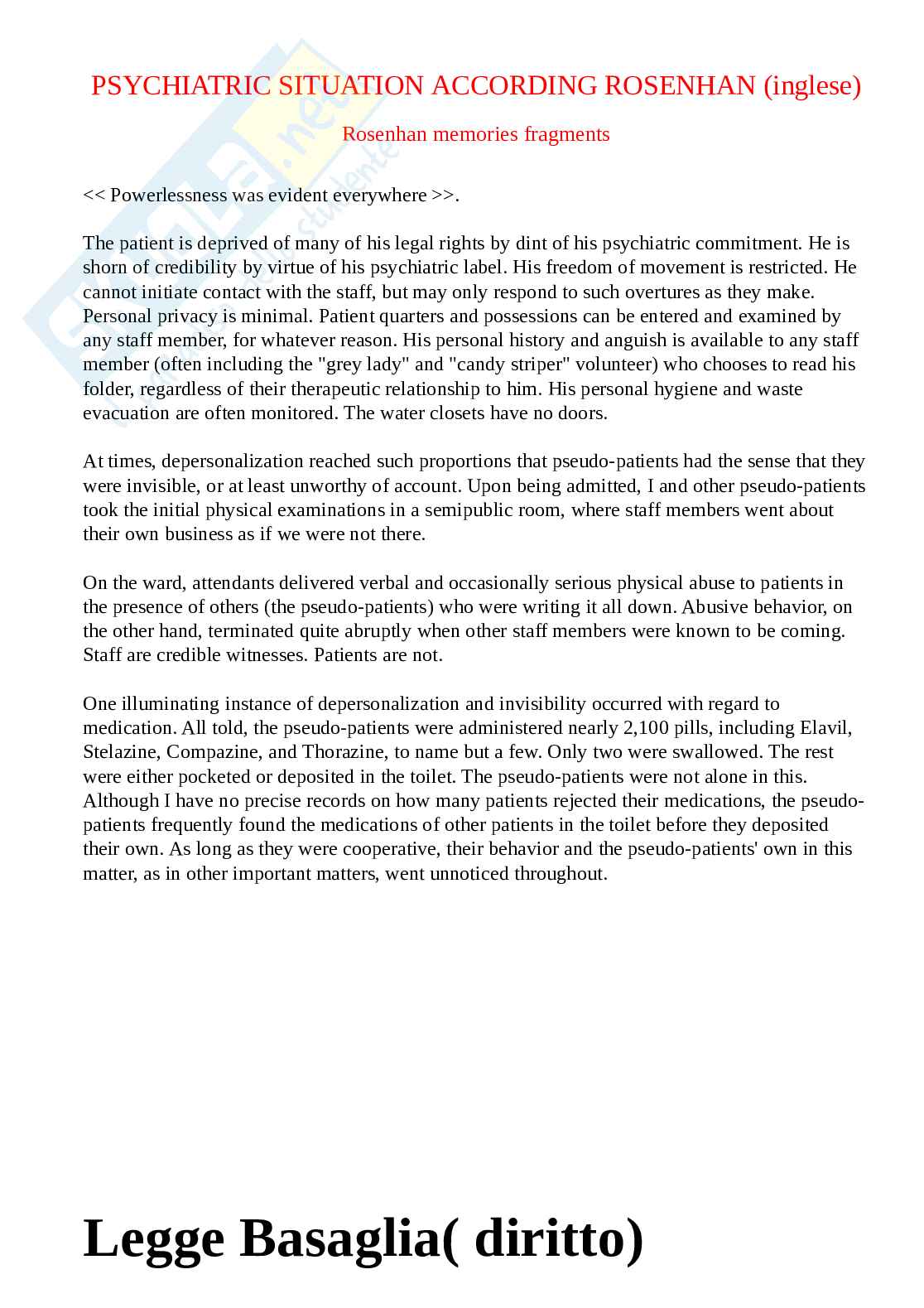 Inglese: Rosenhan memories