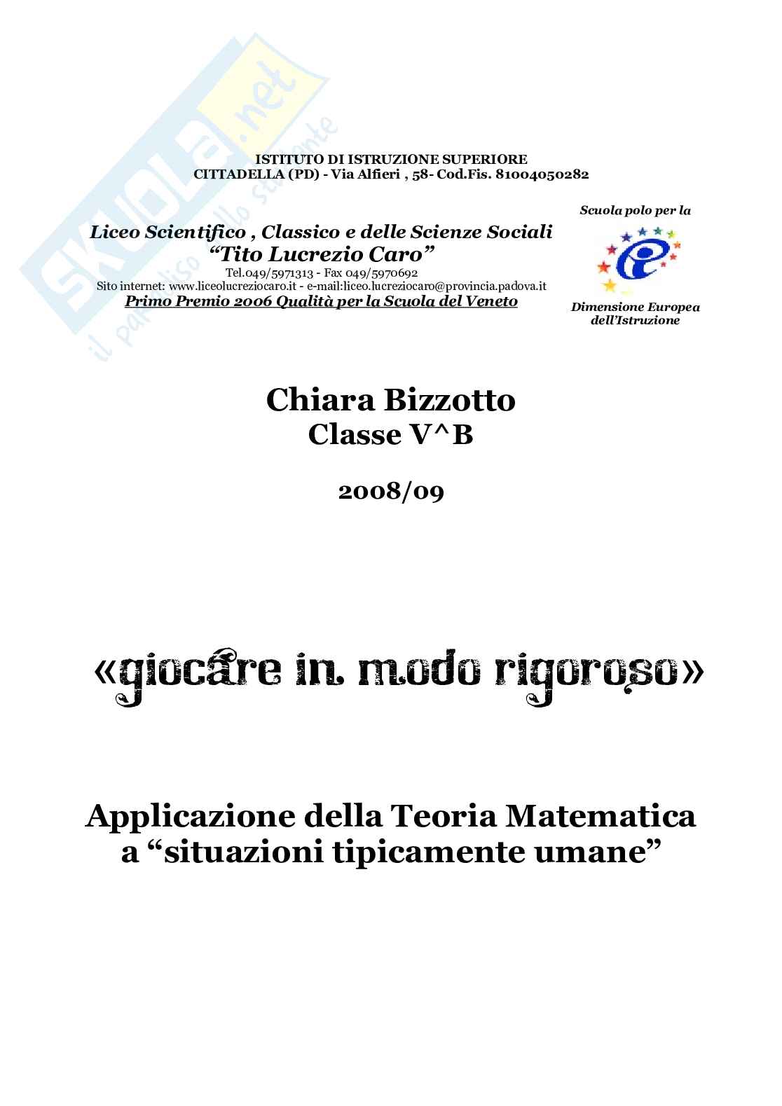 Descrizione: applicazione della teoria matematica a "situazioni tipicamente umane".