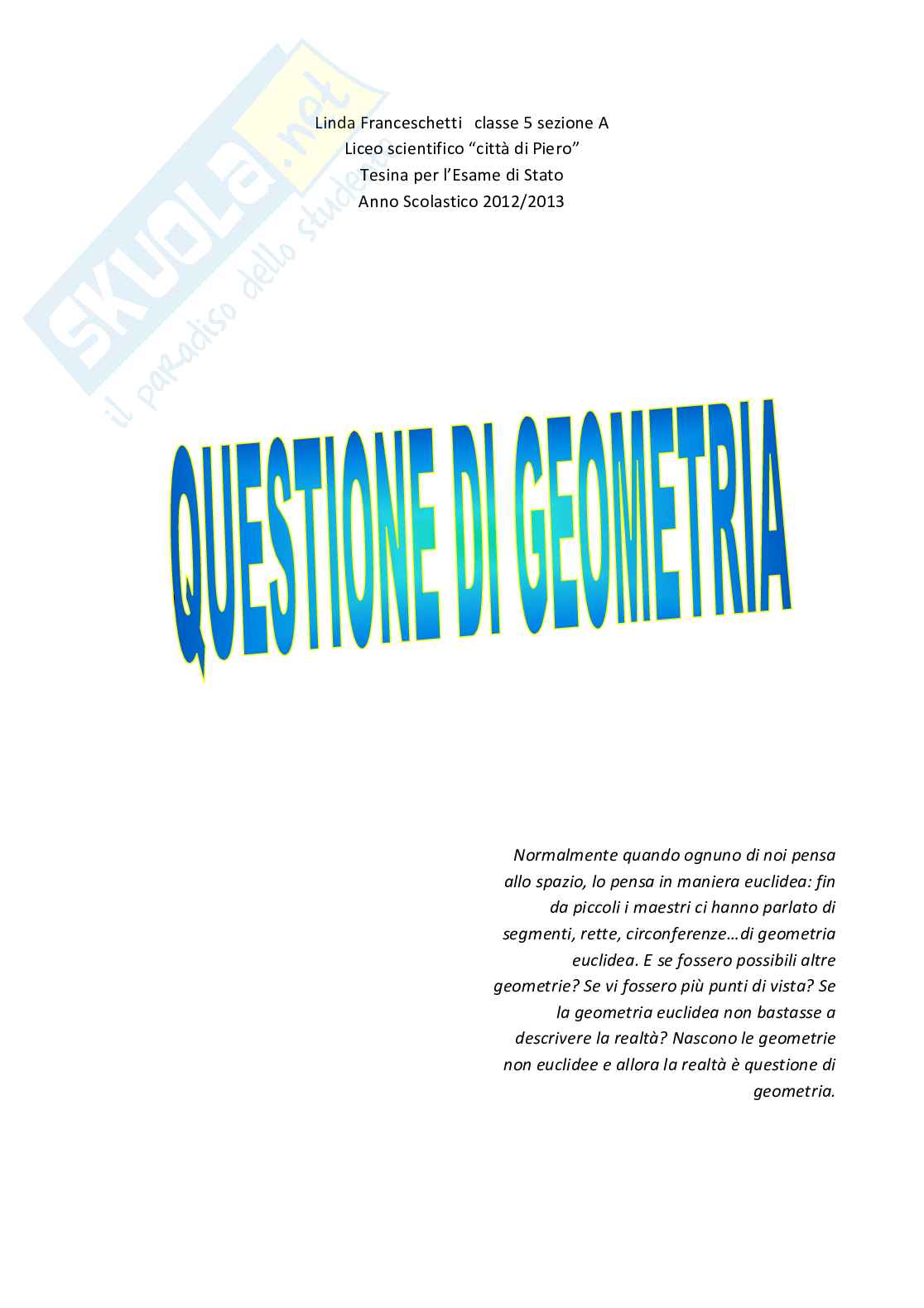 Formulate nell’ Ottocento, le geometrie non euclidee hanno massima diffusione negli anni a