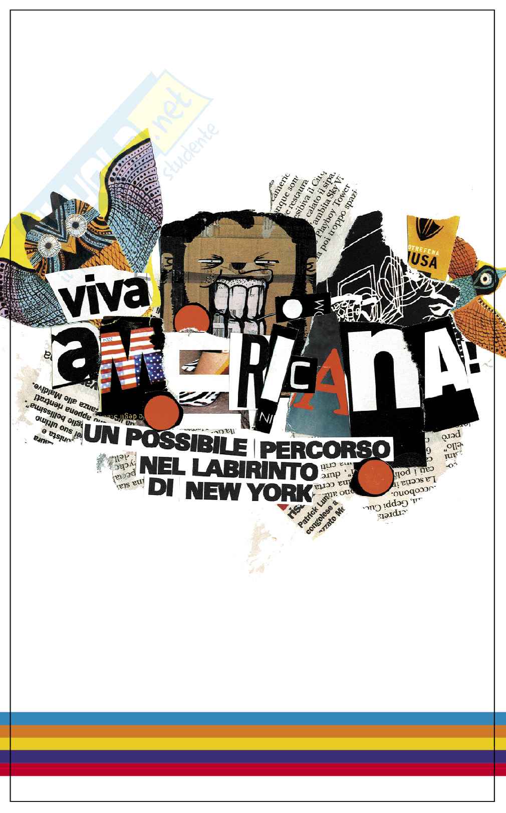 Sommario: Attraverso questo lavoro ho voluto dare vita ad uno scenario Newyorkese fantastico, immaginario, descrivendone il paesaggio, in relazione all'arte. Affidandomi alla mia immaginazione (supportata da reali riferimenti estrapolati da Google Earth), creando pagina per pagina un Mio sfondo (realizzato con la tecnica del Collage, scansionato e dunque impaginato), ho creato questo progetto, riuscendo poi, tramite la mia scuola ad impaginarlo, stamparlo e rilegarlo, dando vita ad un libro, "Viva" Americana.