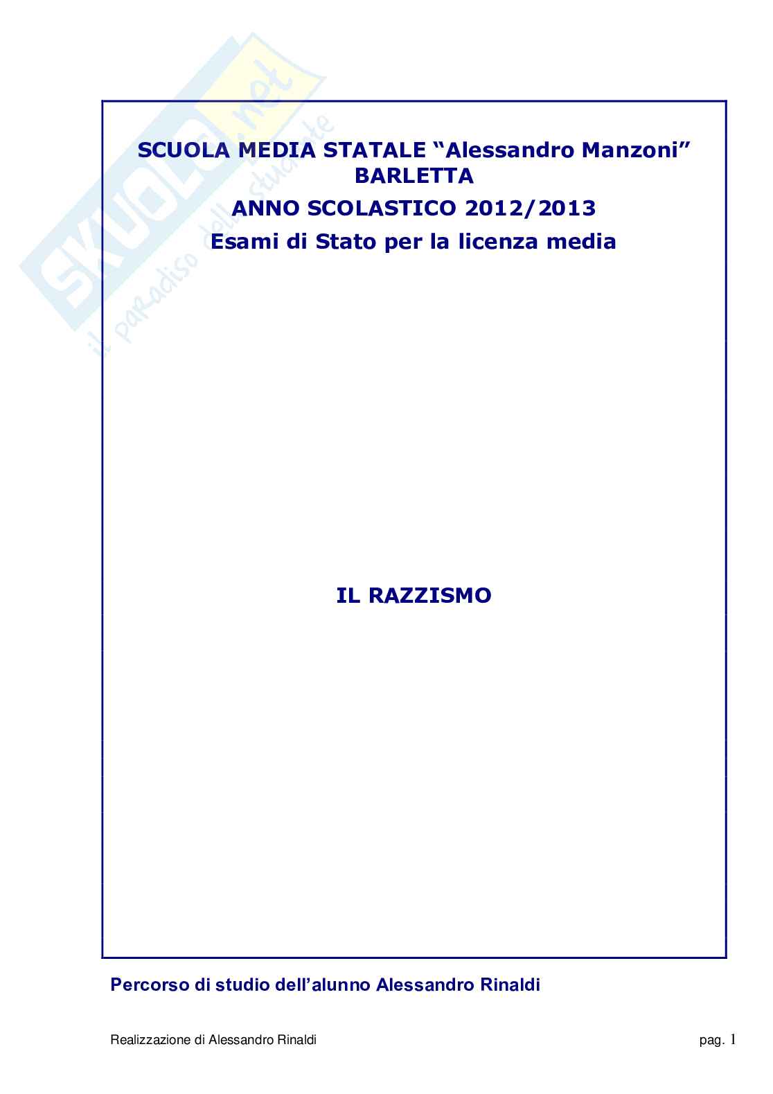 Questa tesina di terza media analizza il tema del razzismo. Argomenti tesina terza media: in Italiano Primo Levi, "Se questo è un uomo", in Letteratura il romanzo "Radici" e la miniserie TV, in Storia il nazismo, l'Olocausto e lo schiavismo, in Geografia il continente americano, in Scienze la genetica, in Matematica E=Mc^2, in Inglese The USA, in Francese le racisme, in Storia dell'arte il cubismo e Guernica, in Tecnologia l'energia nucleare, in Musica Louis Armstrong e il jazz, in Educazione fisica il razzismo nello sport.