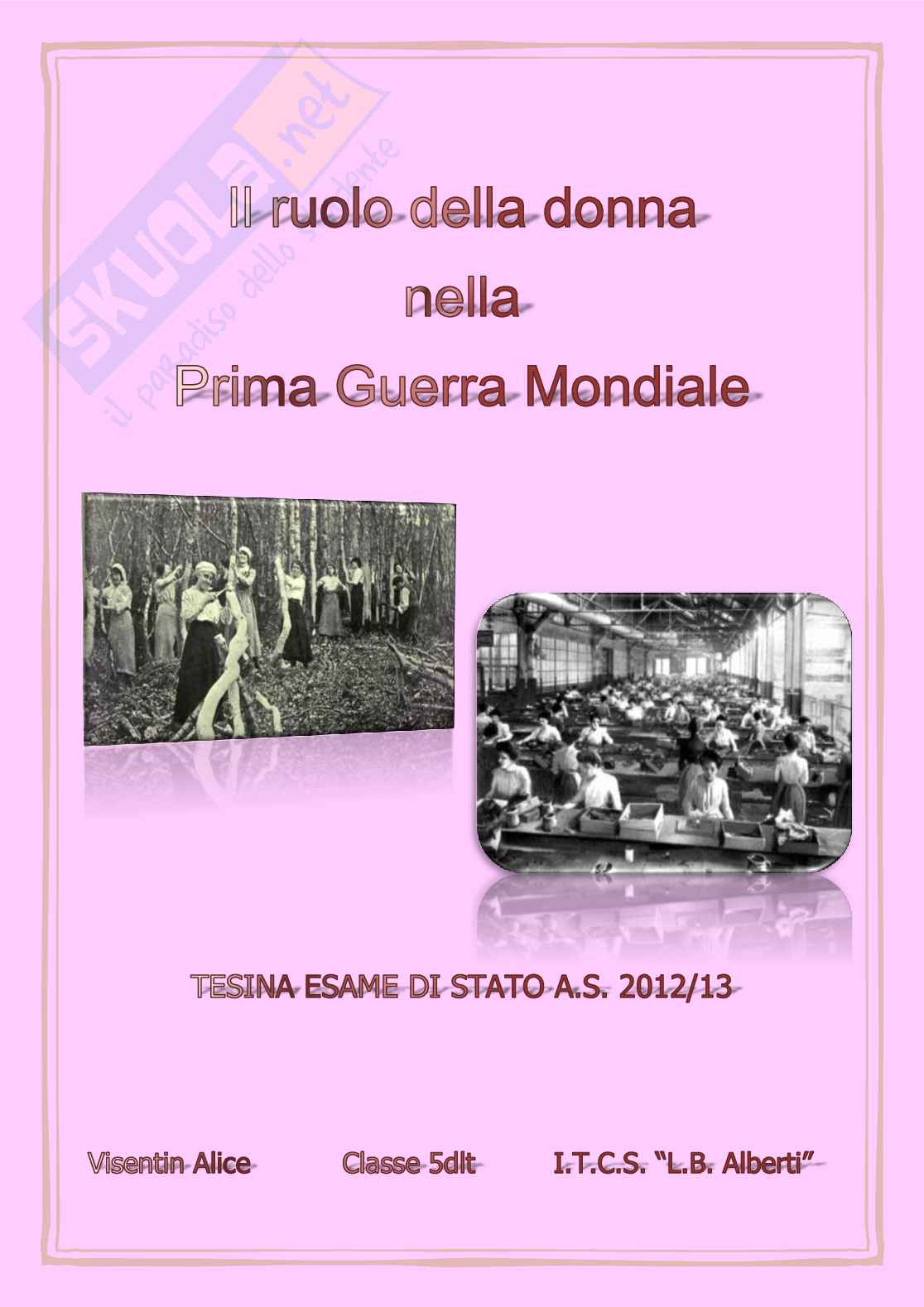 Ho scelto di approfondire la condizione delle donne durante la Prima Guerra Mondiale perché si tratta di