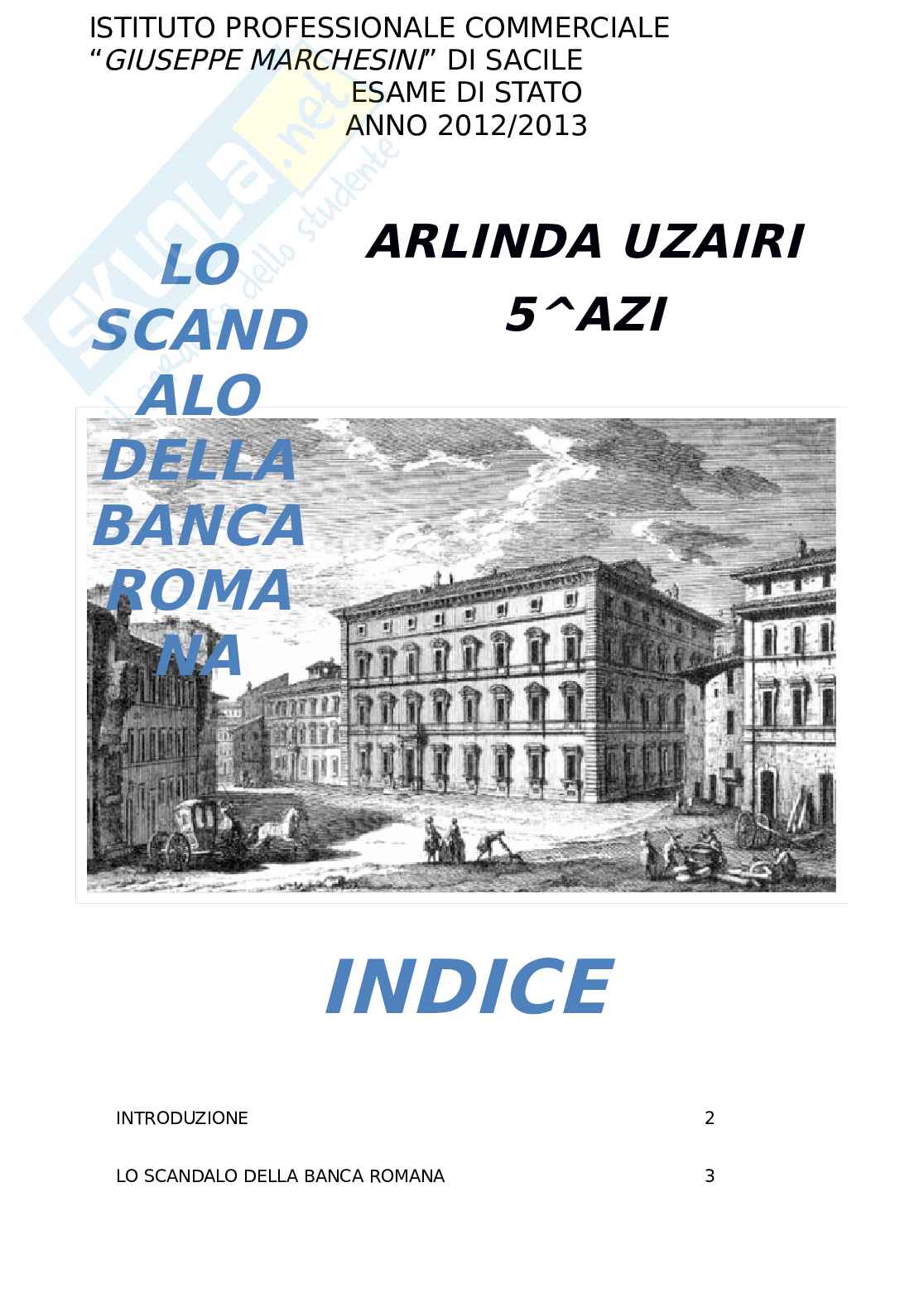 fu la Banca Romana. Lo scandalo della Banca Romana, fu causato dalla grave depressione iniziata