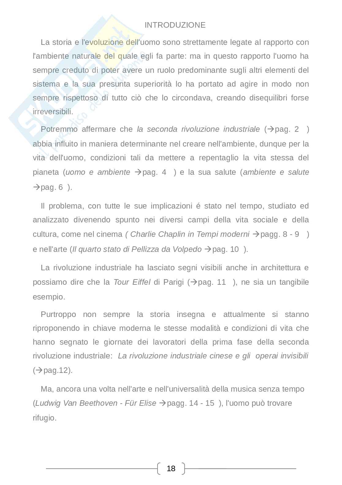 Potremmo affermare che la Seconda rivoluzione industriale abbia influito in maniera determinante nel creare nell'ambiente, dunque per la vita dell'uomo, condizioni tali da mettere a repentaglio la vita stessa del pianeta e la sua salute. Il problema che la tesina mette in luce come, con tutte le sue implicazioni è stato nel tempo, studiato ed analizzato divenendo spunto nei diversi campi della vita sociale e della cultura, come nel cinema e nell'arte.