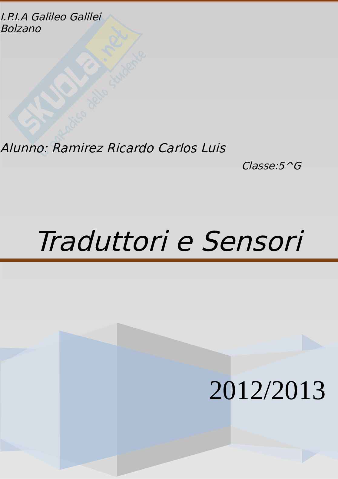 Tesina monografica di Sistemi e automazioni sui sensori e i trasduttori.