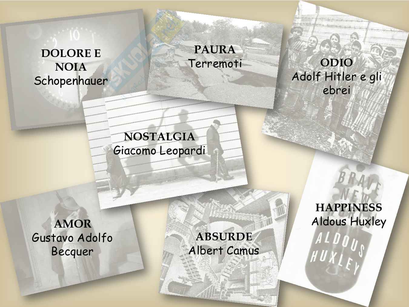 Per le sette materie di esame ho scelto un sentimento per ogni materia. Essendo molti ho preso quelli che più mi ispiravano e quelli che potevo collegare con facilità