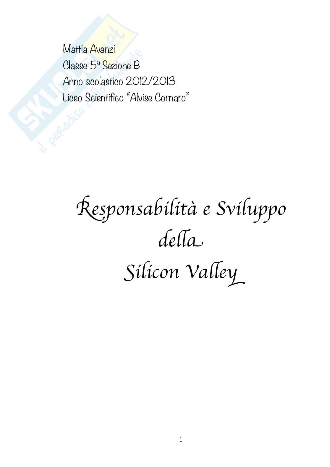 La mia tesina di maturità verte sulla Silicon Valley. Ho scelto la Silicon Valley e il Silicio come argomento di questa tesina, perchè meglio rappresentano i miei interessi e le mie passioni. Inoltre trovo interessante il rapporto tra la Silicon Valley, lo sviluppo tecnologico dell’ultimo secolo e atti bellici come la Seconda Guerra mondiale o la Guerra fredda.
