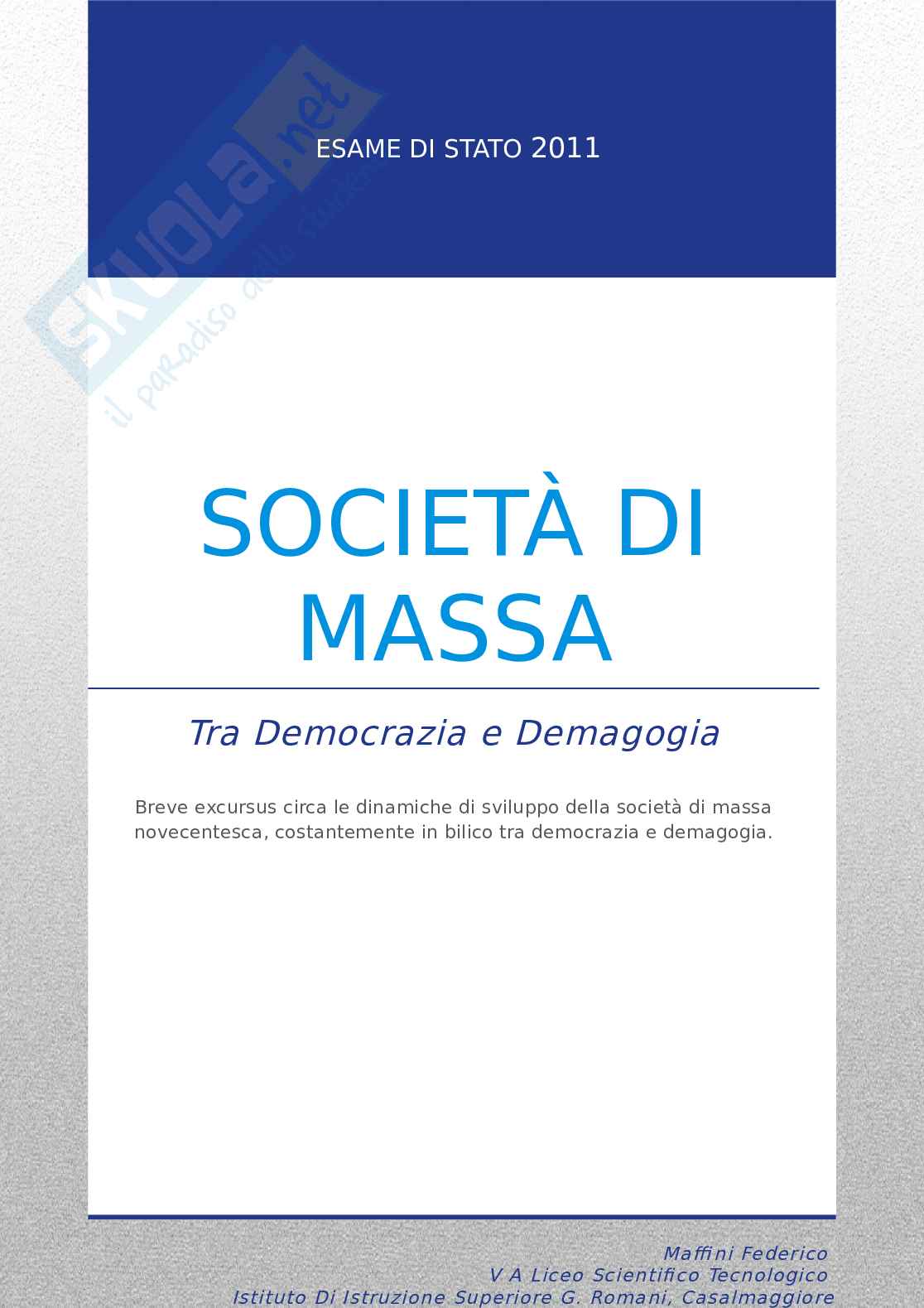 costituzione della società di massa, dai suoi albori alla contemporaneità.
