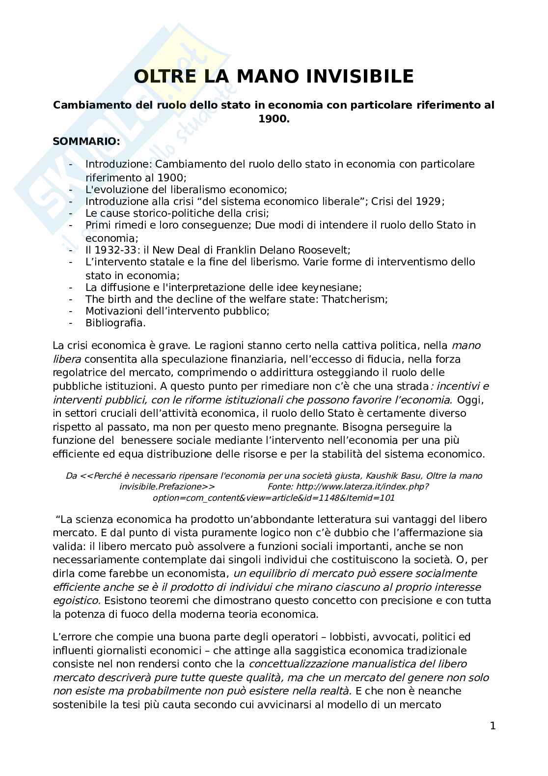 Cambiamento del ruolo dello stato in economia con particolare riferimento al