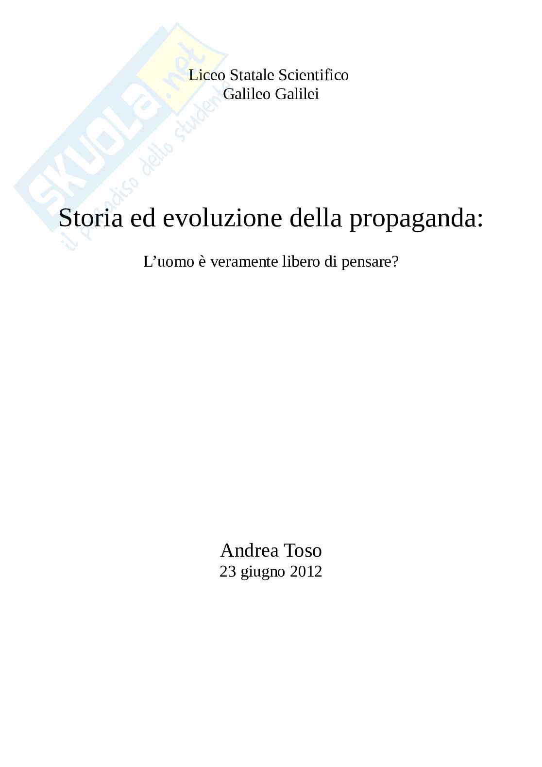 Ho deciso di svolgere la mia tesina su un argomento come la propaganda, non per interesse o