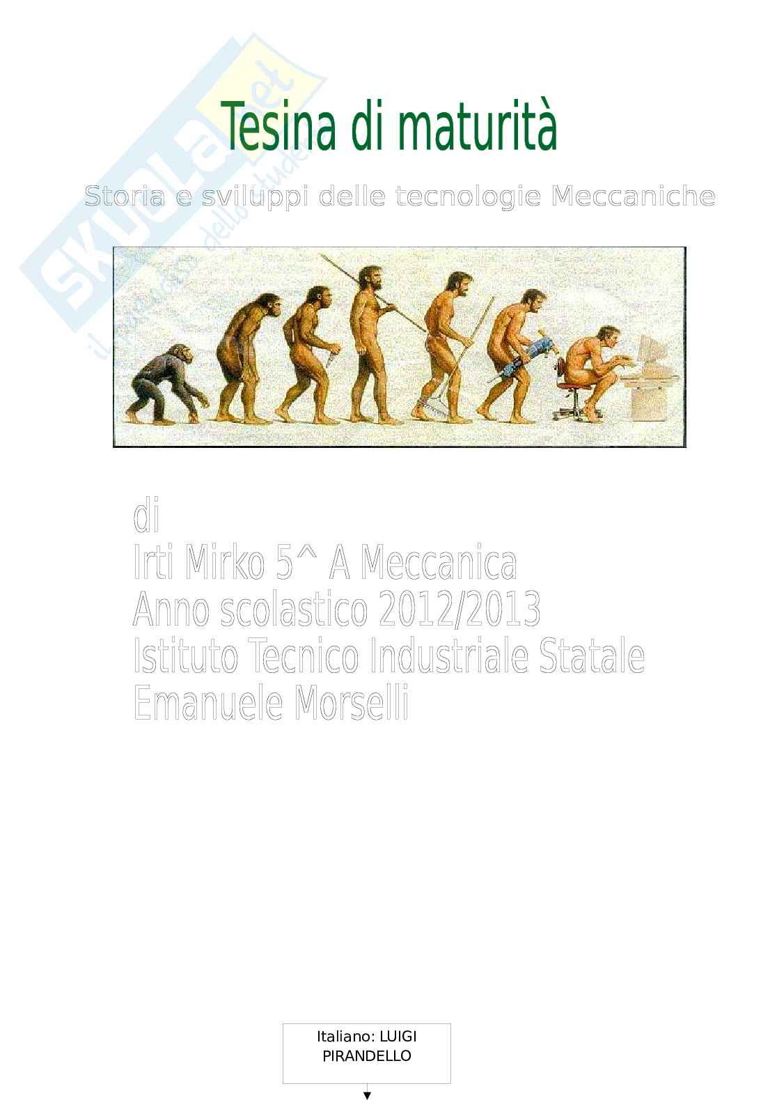 Questa tesina descrive le tecnologie meccaniche e il loro sviluppo, permettendo dei collegamenti disciplinari. Argomenti tesina maturità:in Italiano Pirandello, in Storia la Prima Guerra mondiale, in Meccanica il motore a reazione, in Tecnologia l'usura per fatica e i trattamenti termici, in Disegno i costi di produzione, in Inglese Internet e in Matematica integrali definite.