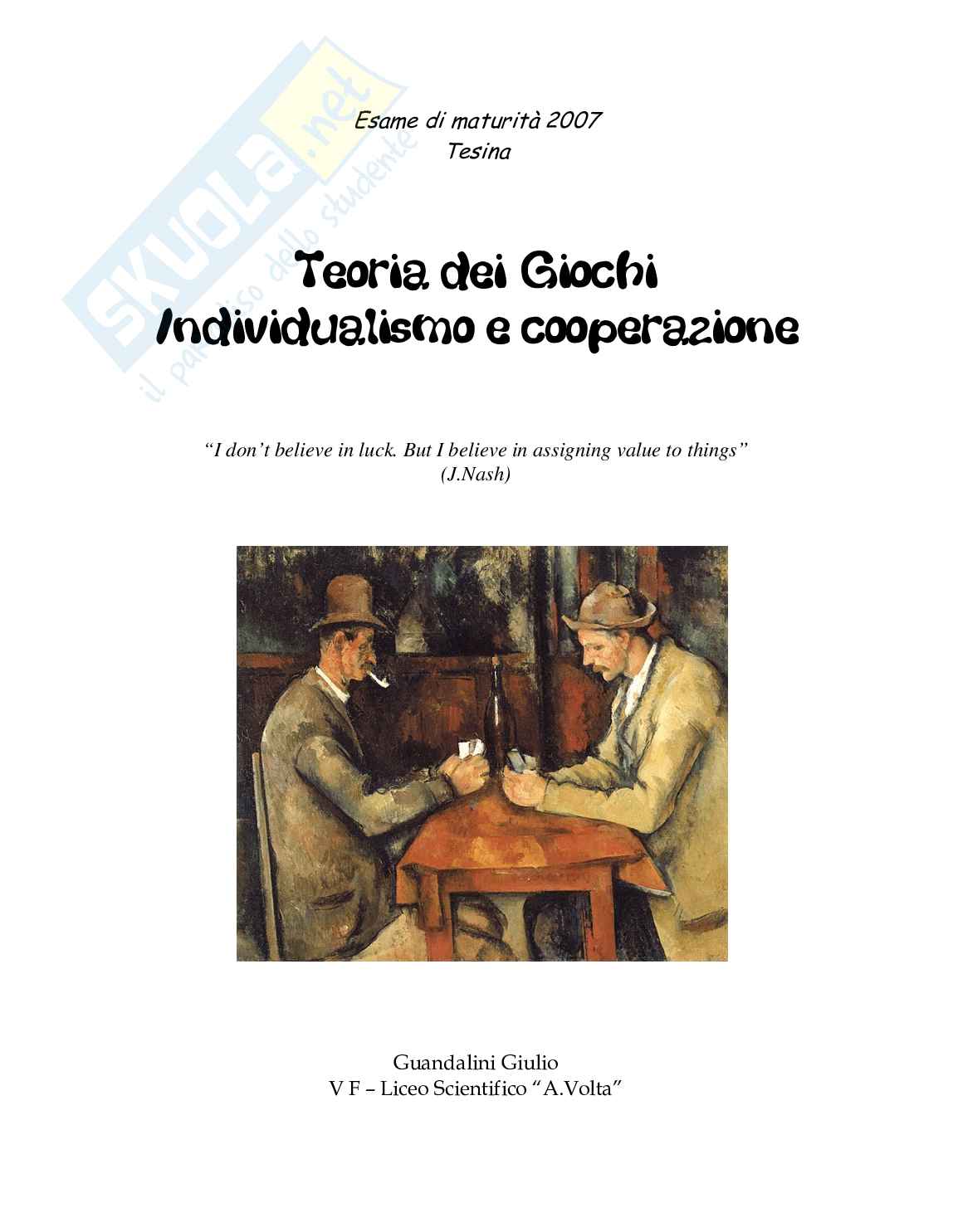 La Teoria dei Giochi è la scienza matematica