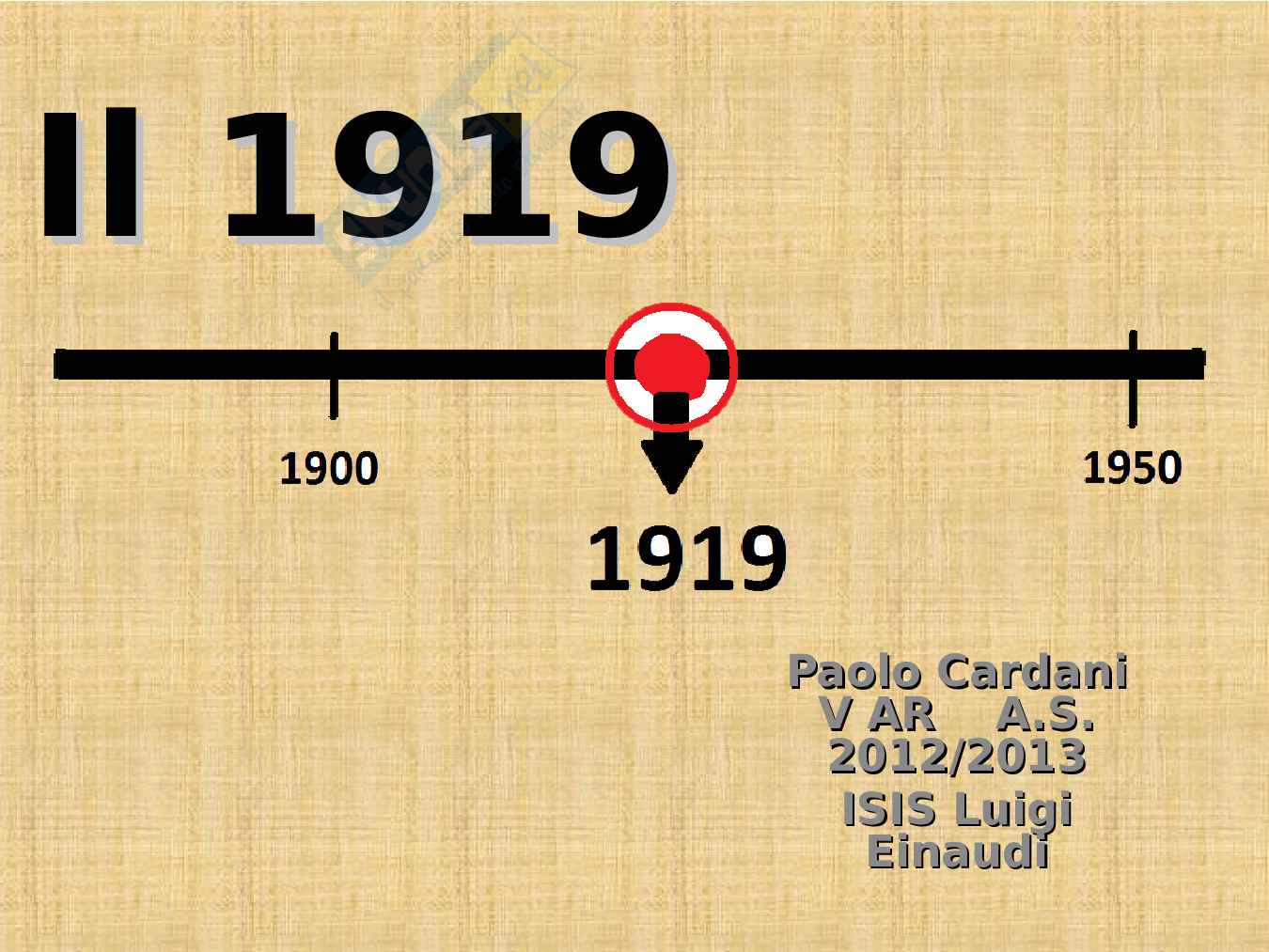 Questa tesina di maturità descrive gli eventi che si sono susseguiti nel corso del 1919. Argomenti tesina maturità ragioneria: in Economia politica i tipi di economia presenti, in Storia il Trattato di Versailles, in Storia la Settimana di Sangue in Germania, in Diritto la Costituzione di Weimar, in Economia la svalutazione del marco e in Inglese America's Isolationism.
