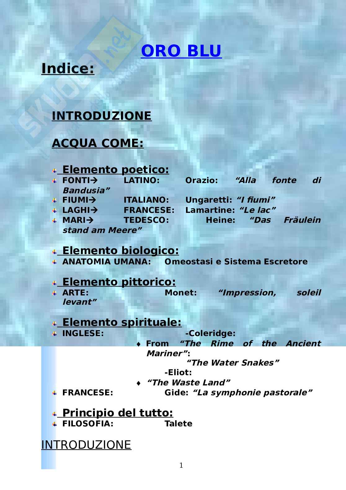 ACQUA COME ELEMOENTO POETICO
