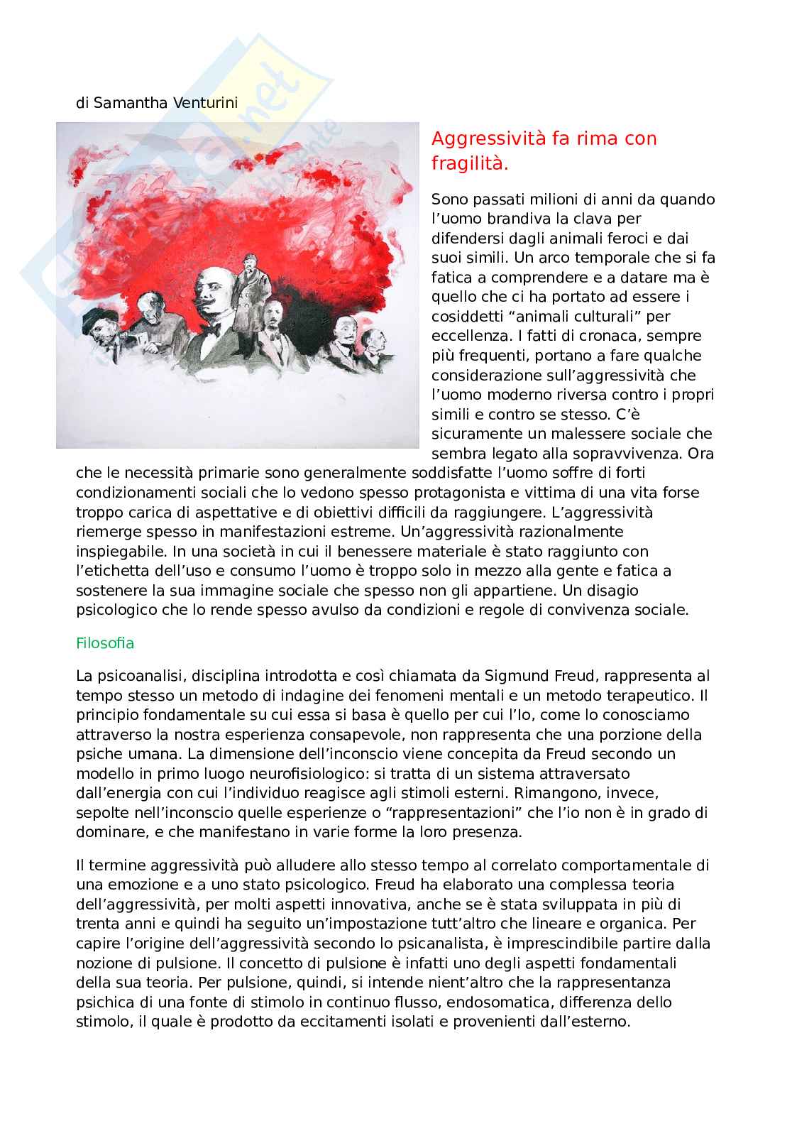 dinamiche inconsce del singolo individuo, condannando l’uomo ad una aggressività