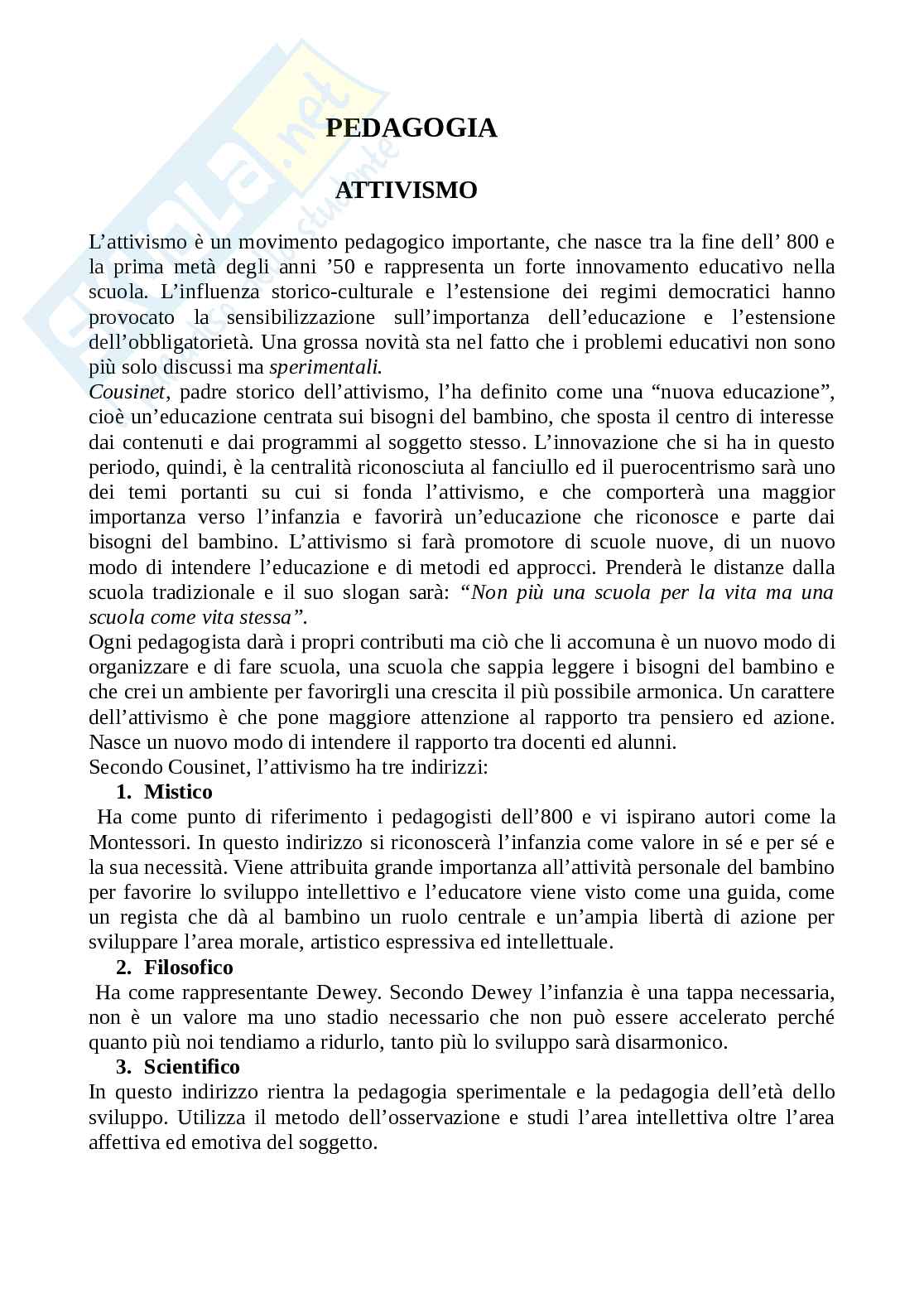 bisogni del bambino. L’attivismo si farà promotore di scuole nuove, di un nuovo