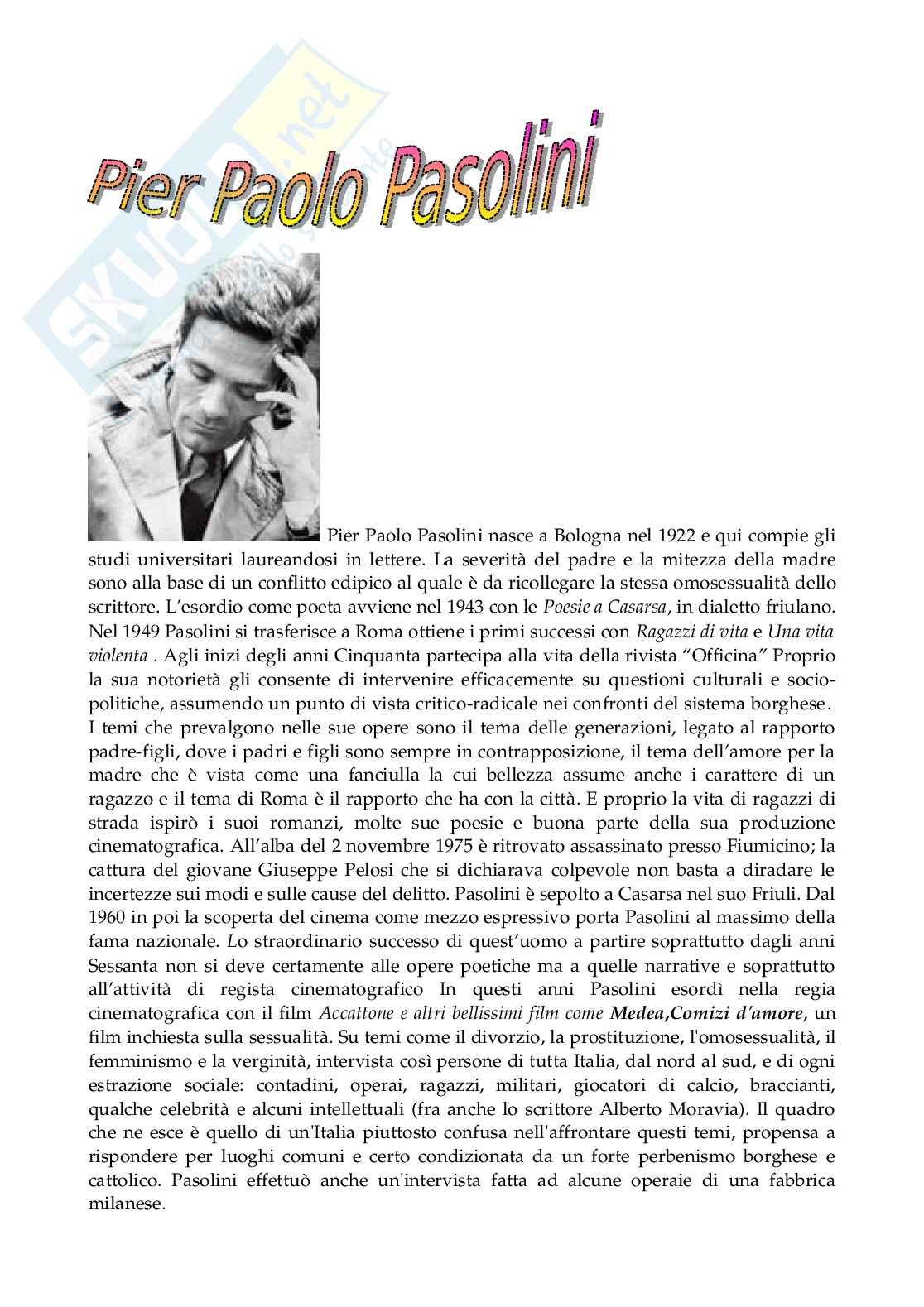 incertezze sui modi e sulle cause del delitto. Pasolini è sepolto a Casarsa nel suo Friuli. Dal