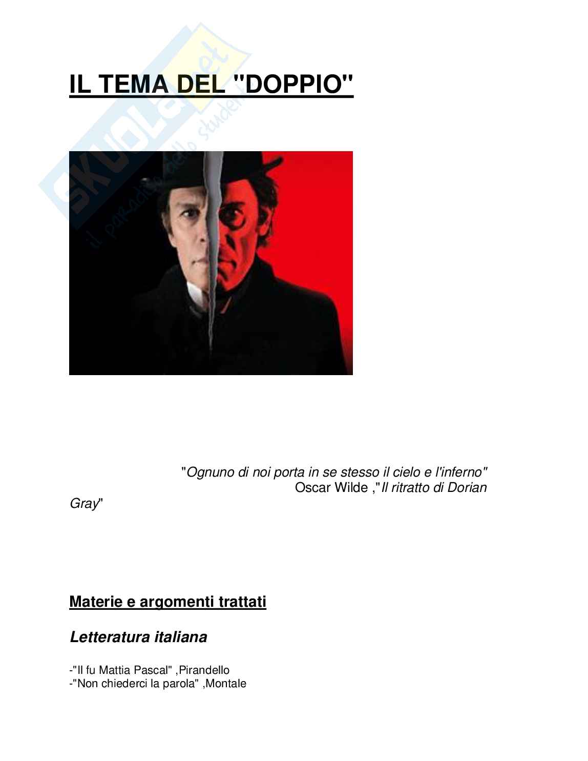 proprio Doppio,per poter negare il pensiero della morte attraverso uno sdoppiamento