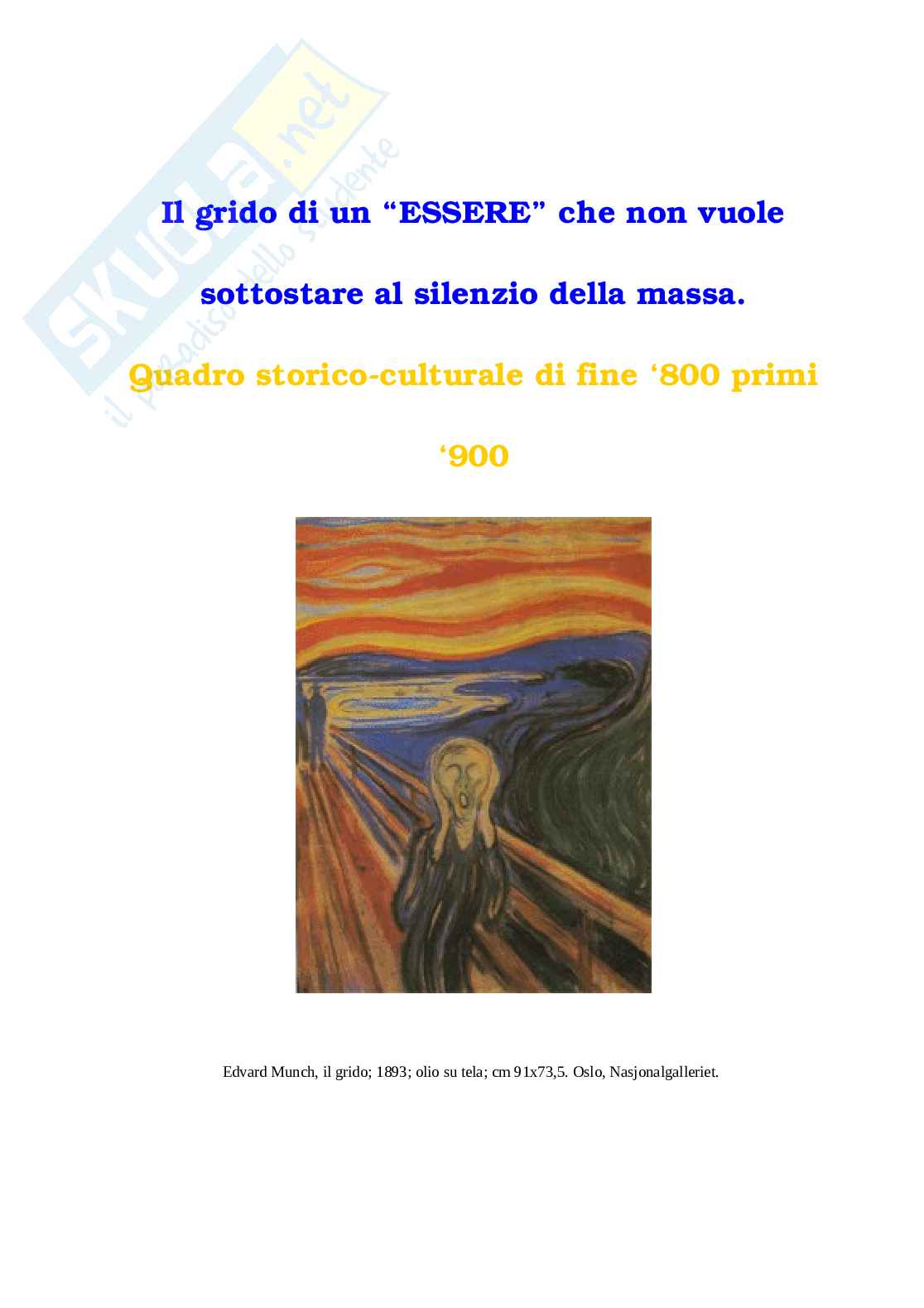 Quadro storico-culturale di fine ‘800 primi ‘900
